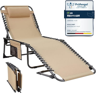 KingCamp キャンプベッド 折りたたみ コット サマーベッド 3way 5段階調節 耐荷重120kg 頑丈 小物収納 簡単組立 寝心地良い 簡易ベッド ビーチチェア リクライニング アウトドア