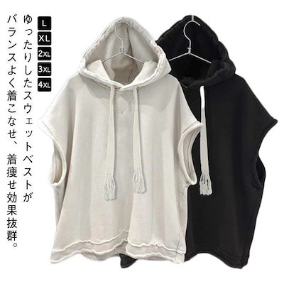 売れ筋の新商品パーカー ベスト レディース ノースリーブ フード付き ベスト プルオーバー スウェット トレーナー ゆったり ゆる チュニック 体型カバー 重ね着