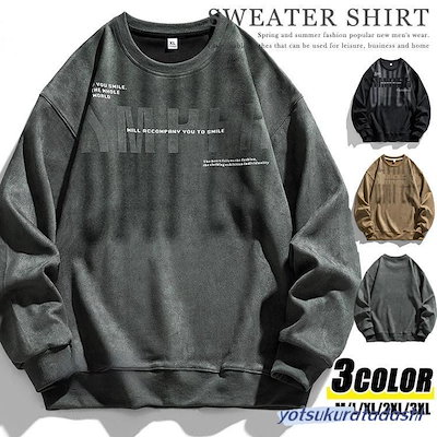 新製品発売スエード調 トレーナー メンズ スウェット 長袖トレーナー 大きいサイズ おしゃれ 英文字 春 春物 春服 秋物