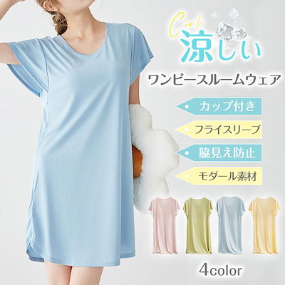 ルームウェア ワンピース カップ付き ナイトブラ一体型 部屋着 ナイトウェア パジャマ レディース 半袖 涼しい 爆買