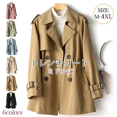トレンチコート レディース スプリングコート ミドル丈 アウター 春 春コート 無地 コート 長袖 ライトアウター ジャケット カジュアル