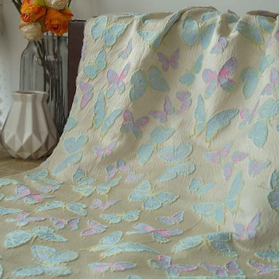 新作お得 155cm幅 花柄 海外通販 生地 エンボス生地 立体 ブルー 布地 90cm単位 ピンク ジャカード生地 蝶柄 布