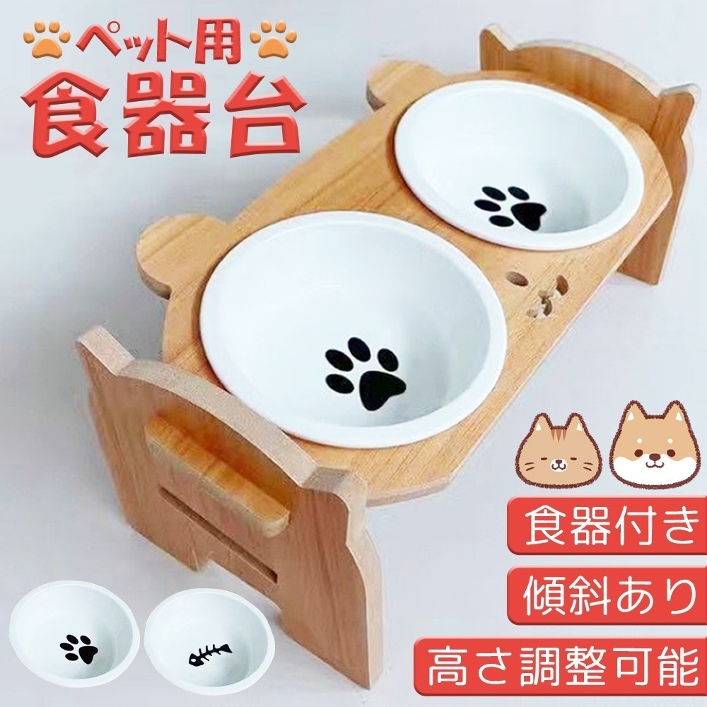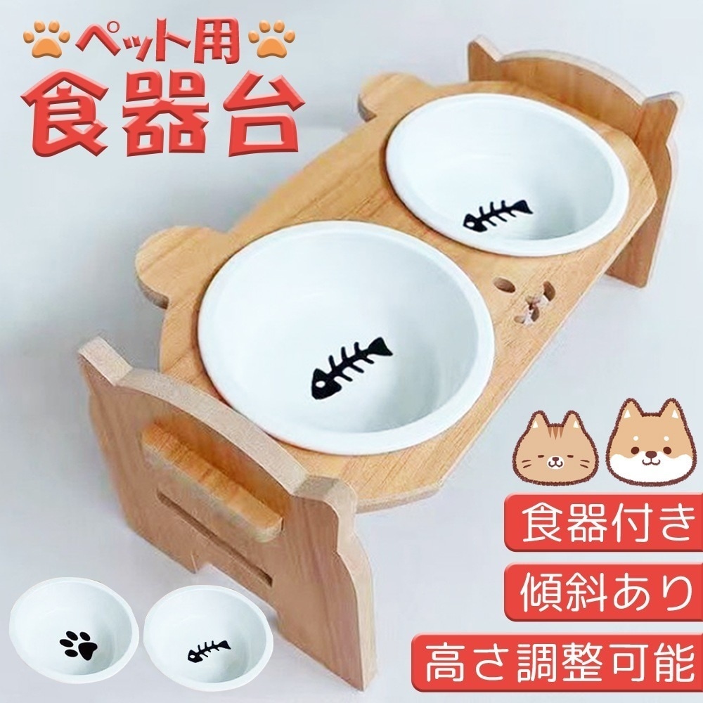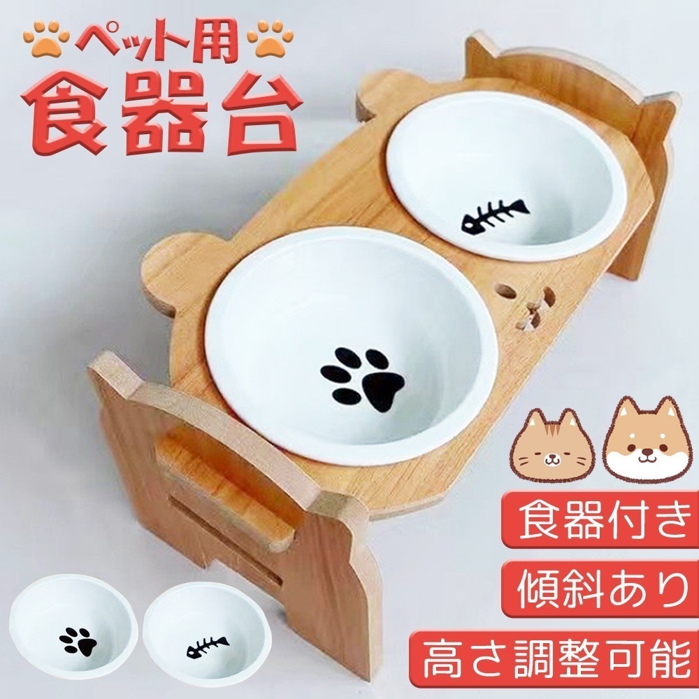 猫 食器 フードボウル 陶器 早食い防止 吐き戻し防止 猫の食器 餌入れ ペット 猫用 犬 皿 ご飯 餌皿 スタンド 斜め 負担軽減 食器台 水 アウトレット