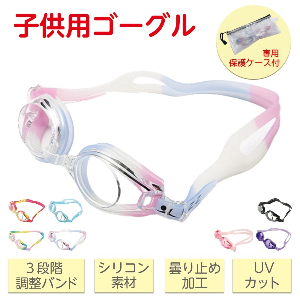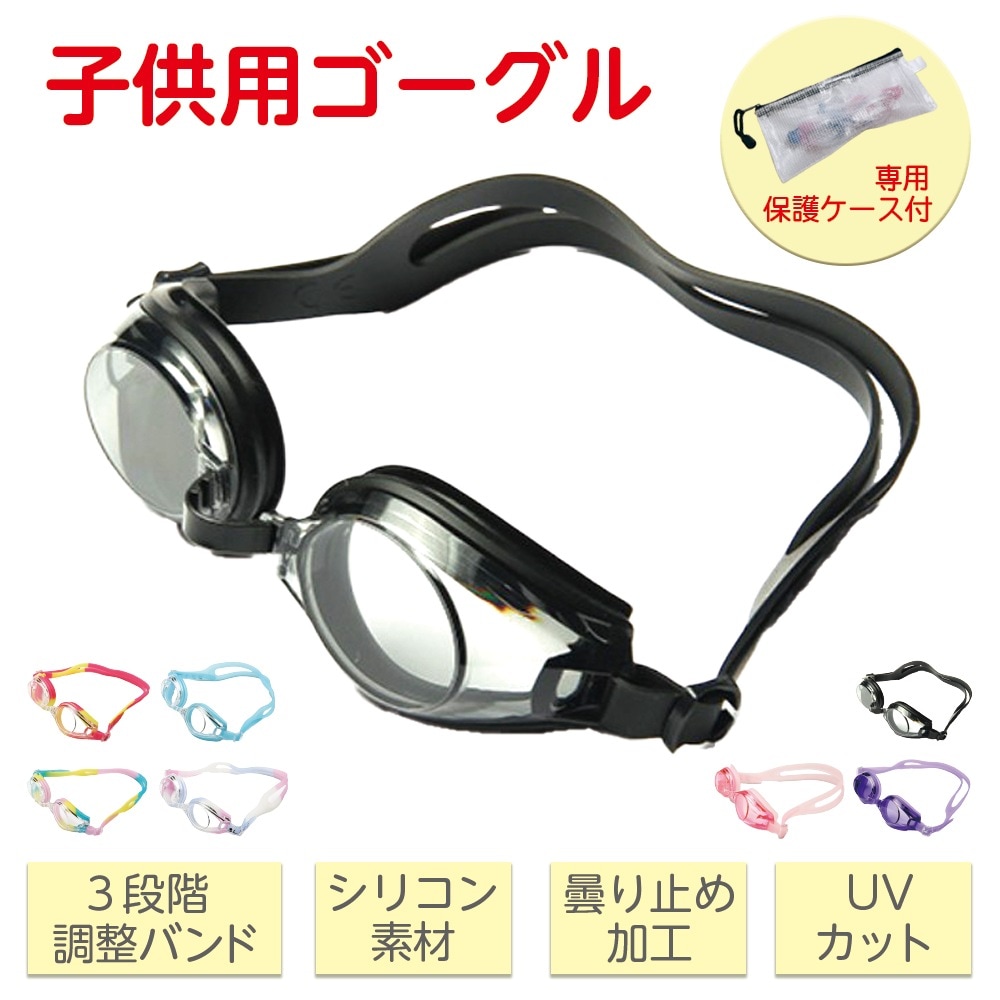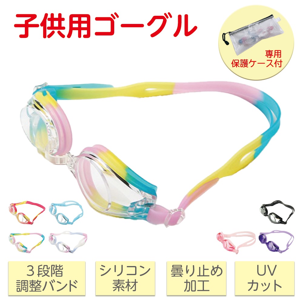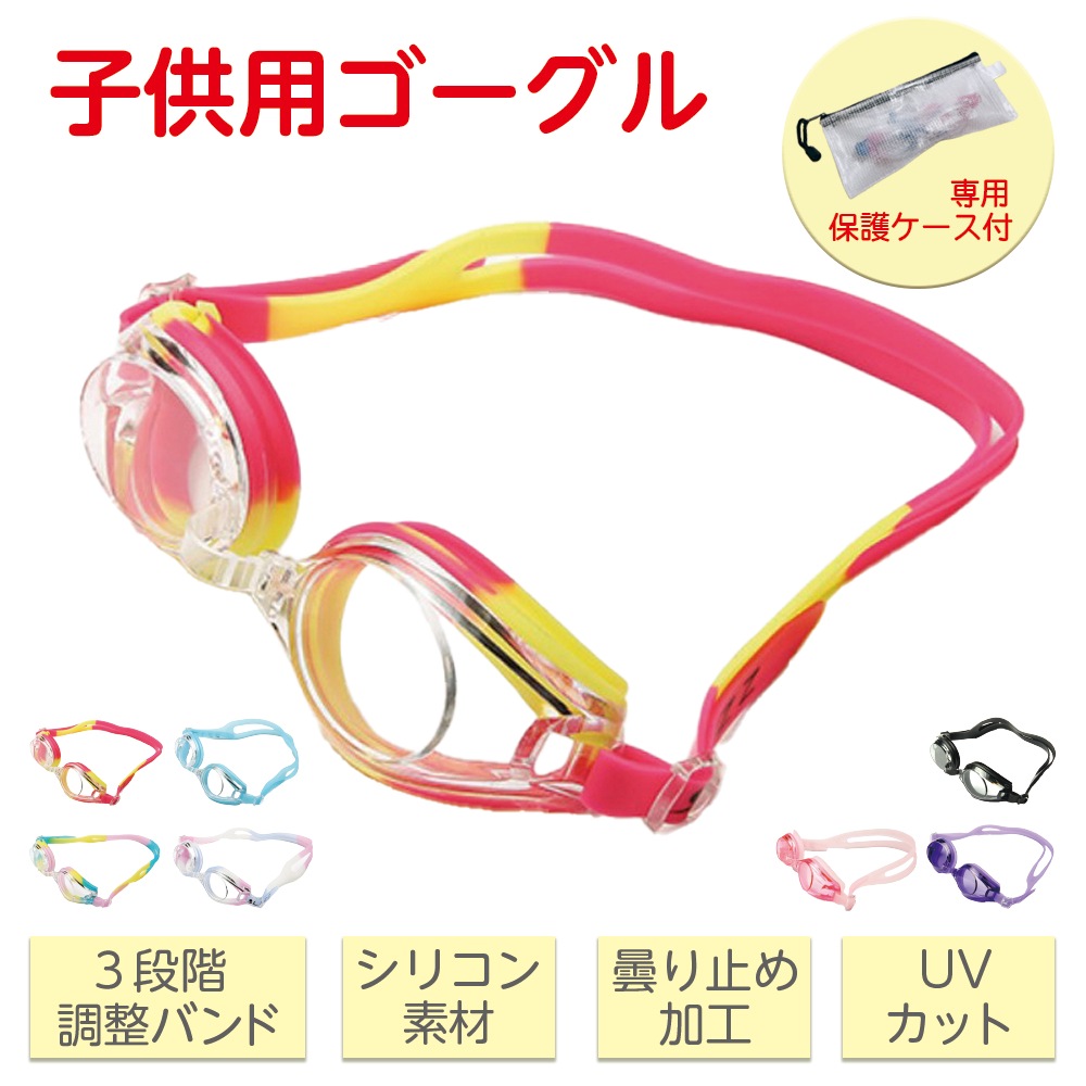 ゴーグル 水泳 子供 滑り止め キッズ ジュニア スイミング 水中メガネ 海 スイムゴーグル 小学生 カラフル カワイイ UVカット ケース ネームタグ