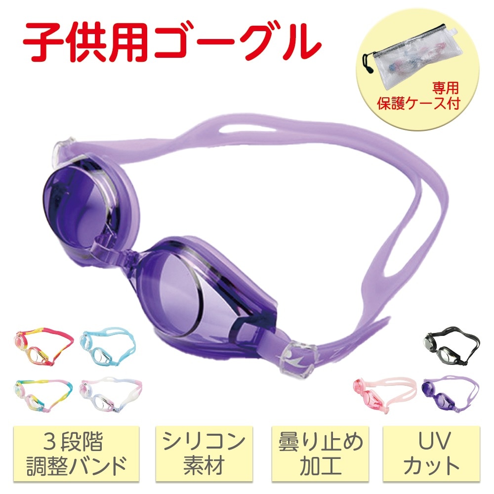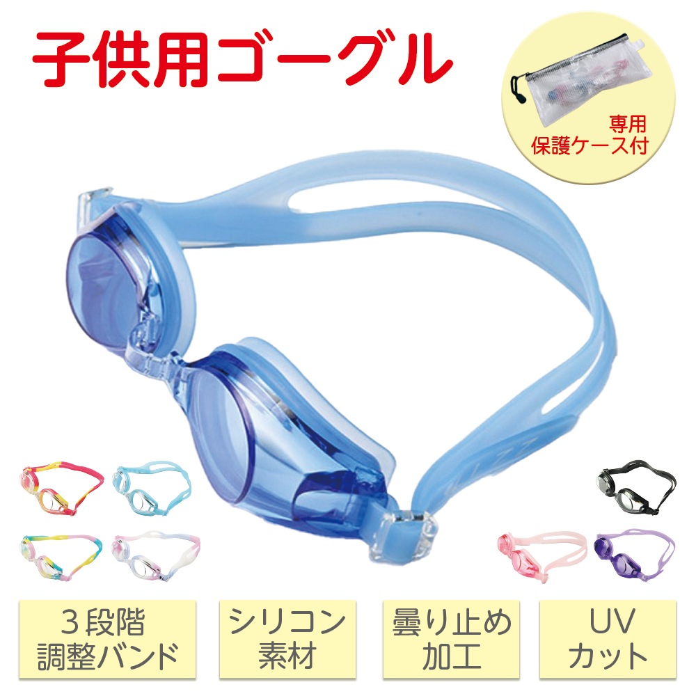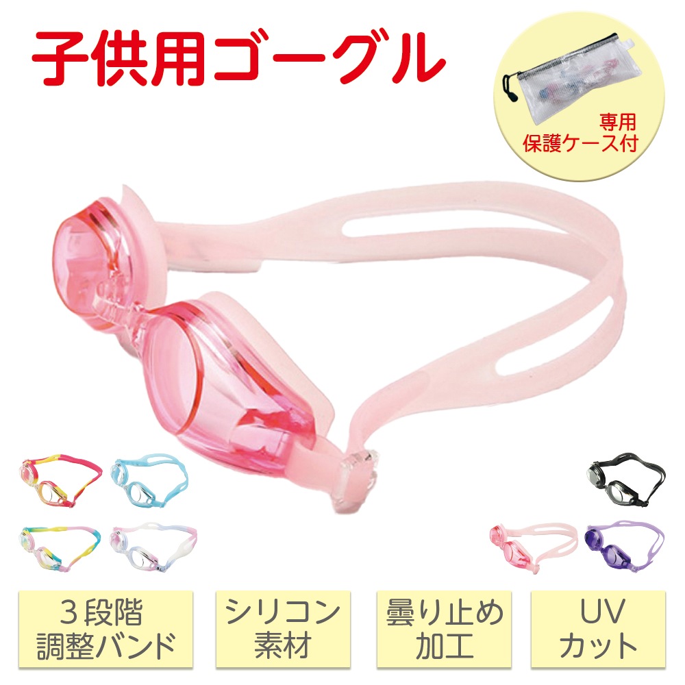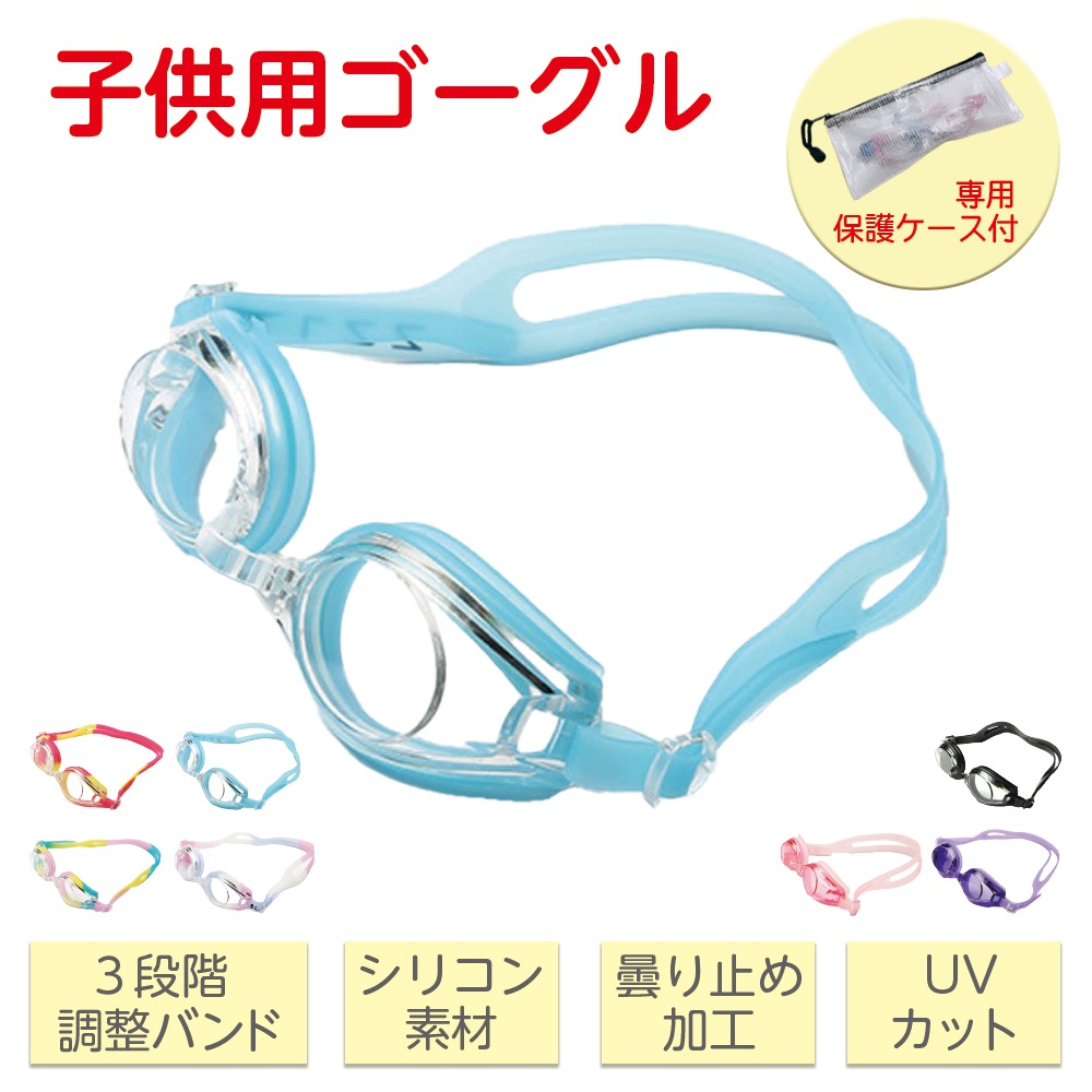 ゴーグル 水泳 子供 滑り止め キッズ ジュニア スイミング 水中メガネ 海 スイムゴーグル 小学生 カラフル カワイイ UVカット ケース ネームタグ