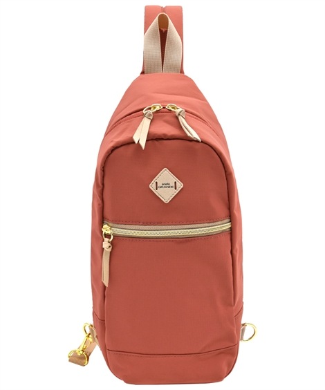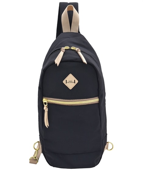 | 材料/素材 | 材質=ナイロン サイズ=たて約36cm×よこ(上部)約14cmよこ(底部)約17cm×まち幅約9cm 開閉=ファスナー ポケット=中:1個(オープン×1)外:2個(オープン×1、ファスナー×1)ショルダー長さ=約43~104cm 調整可能 取り外し不可 重量=約190g | ||
