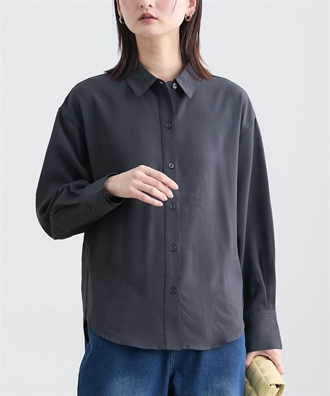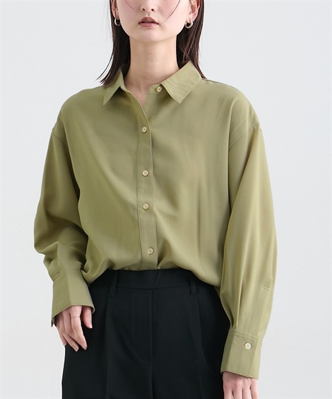 | 材料/素材 | 品質=ポリエステル97%・ポリウレタン3% 前・袖口ボタン開き透け感:単色はややあり伸縮性:ややあり生地の厚み:普通光沢感:ややあり季節:春・秋シルエット:ゆったり | ||