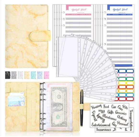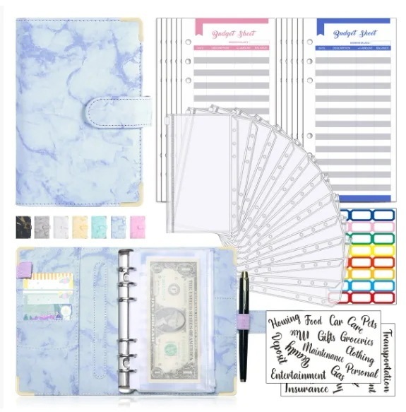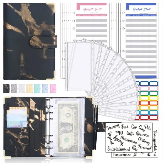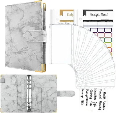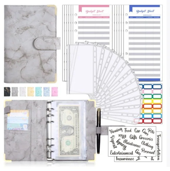 家計管理 ポーチ お金管理 ファイル 6穴 家計簿 袋分け 予算管理 バインダー A6(グレー