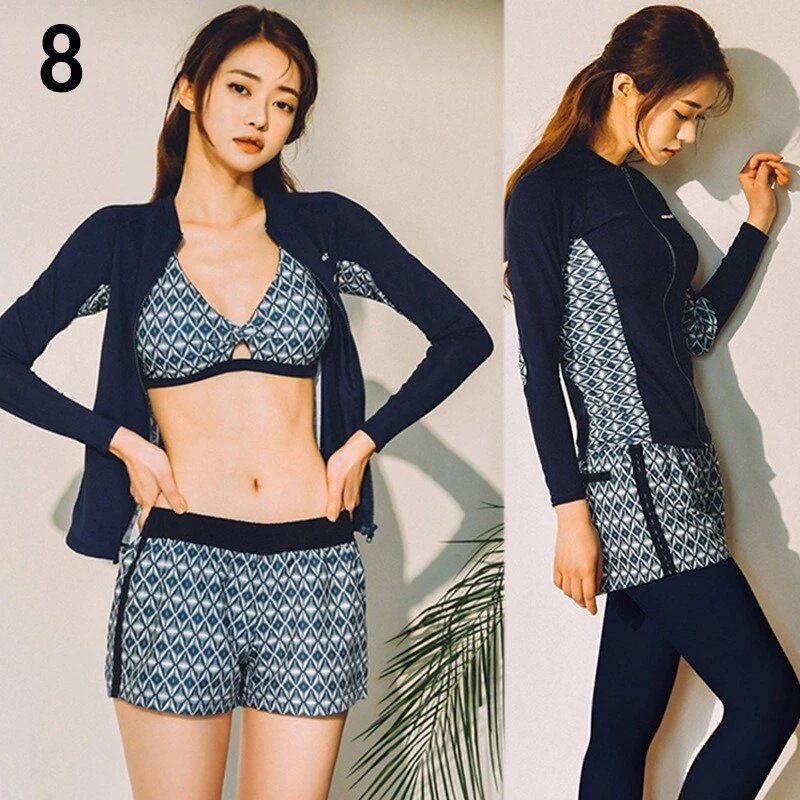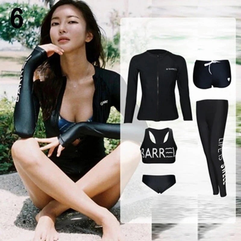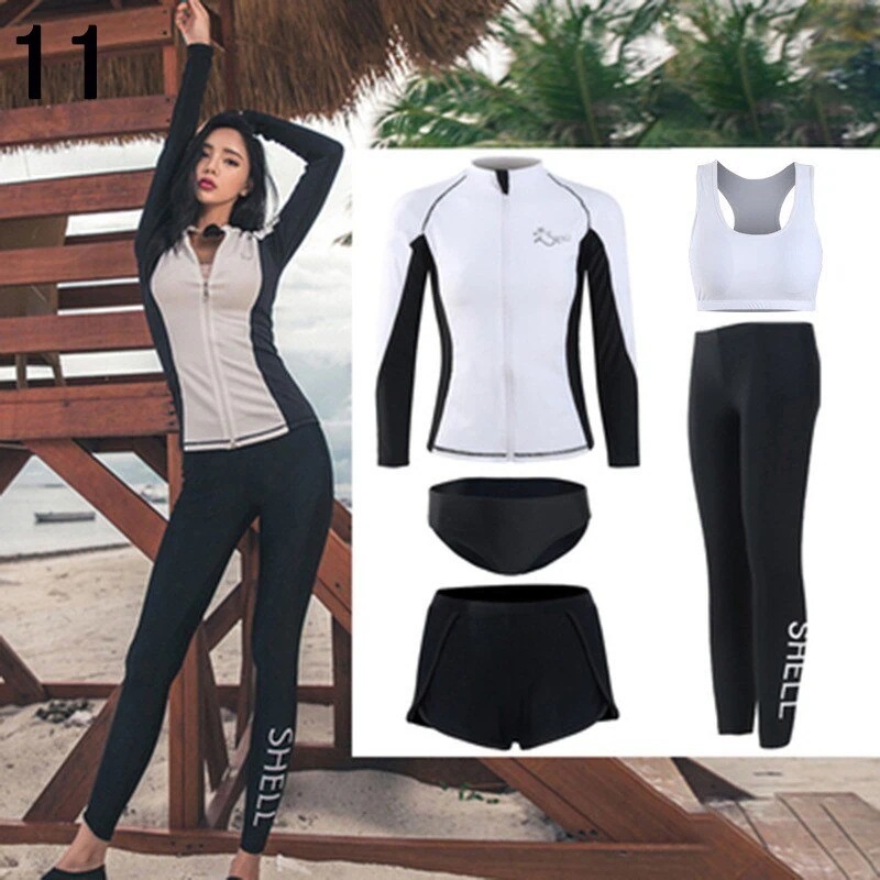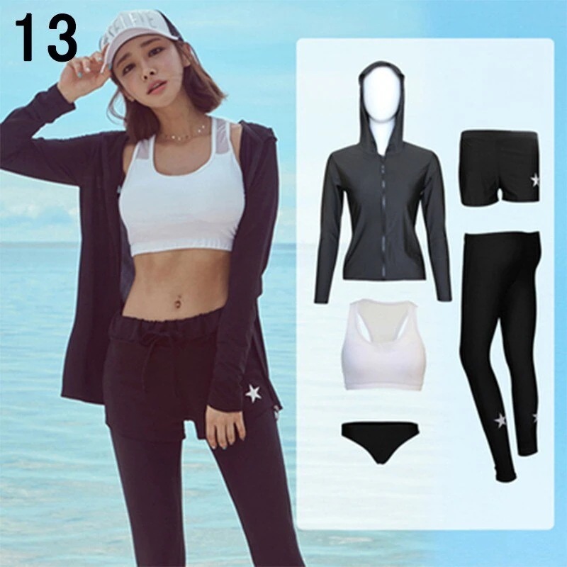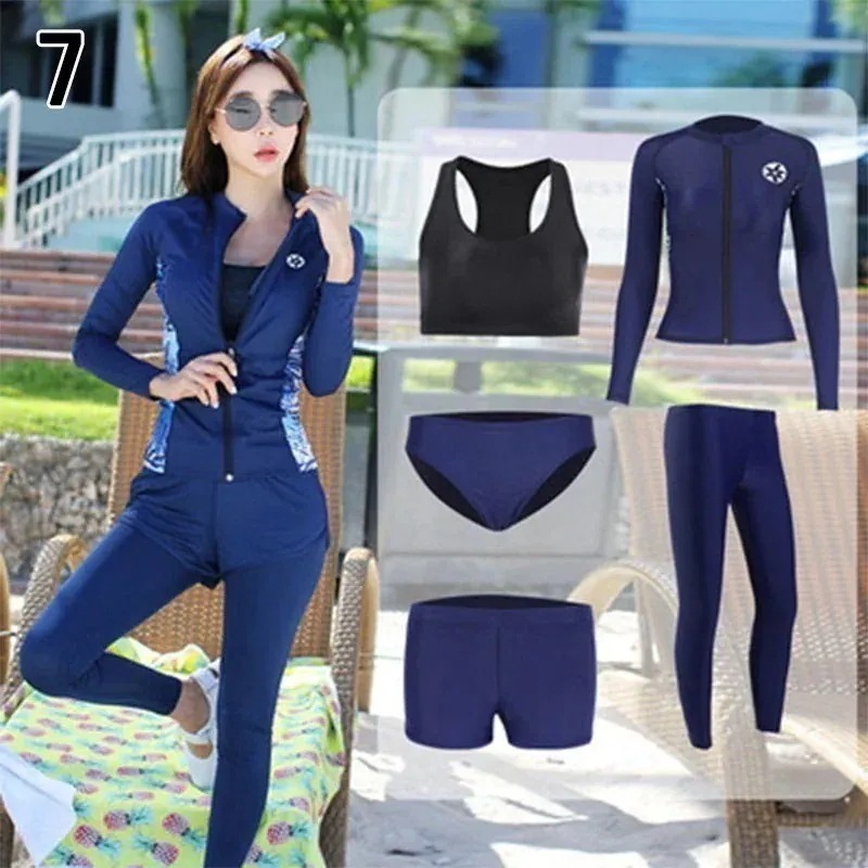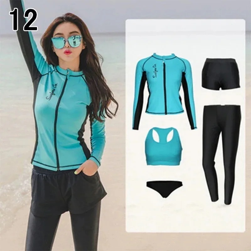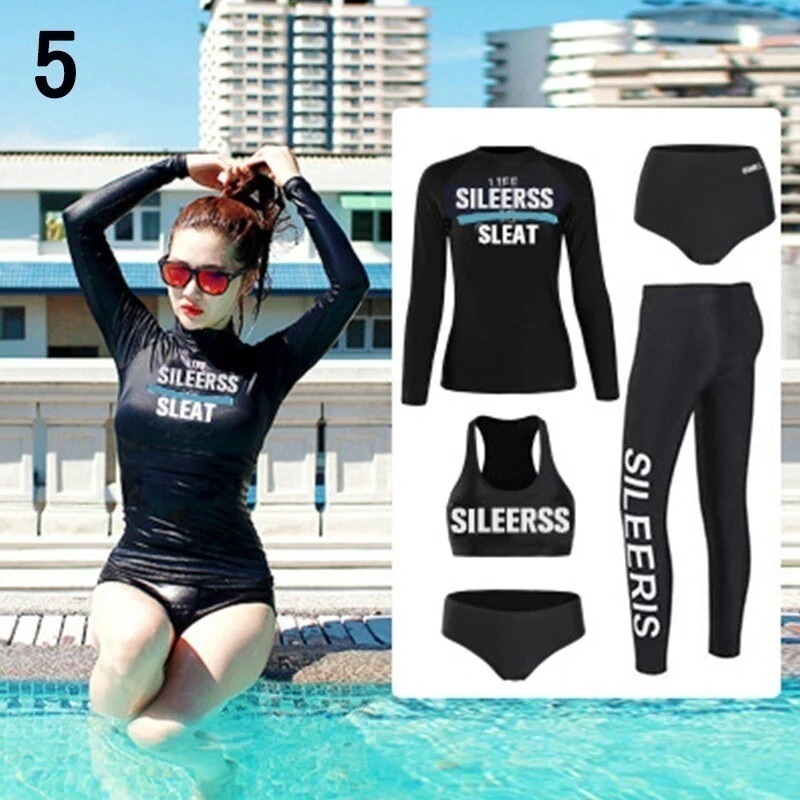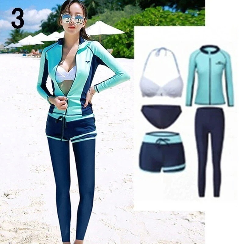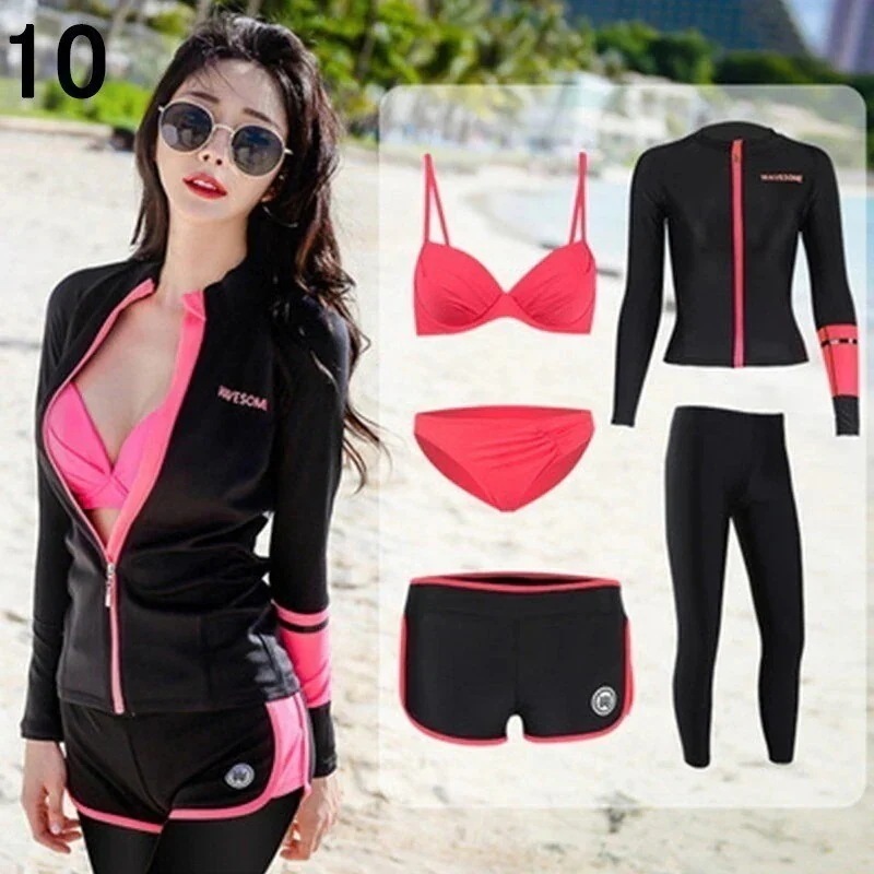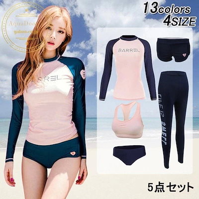水着 レディース 体型カバー フィットネス水着 5点セット ビキニ 韓国風 長袖ラッシュガード 大きいサイズ 3040代 ママ水着 サーフィン服 日焼け防止