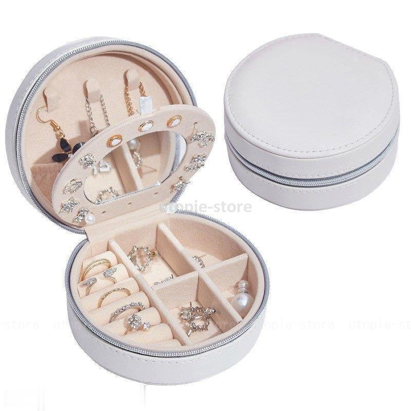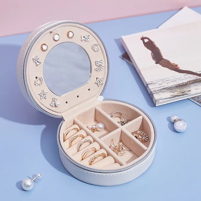 ジュエリー アクセサリー用品 収納ボックス ケース 大容量 無地 丸型 チャック コンパクト 高見え