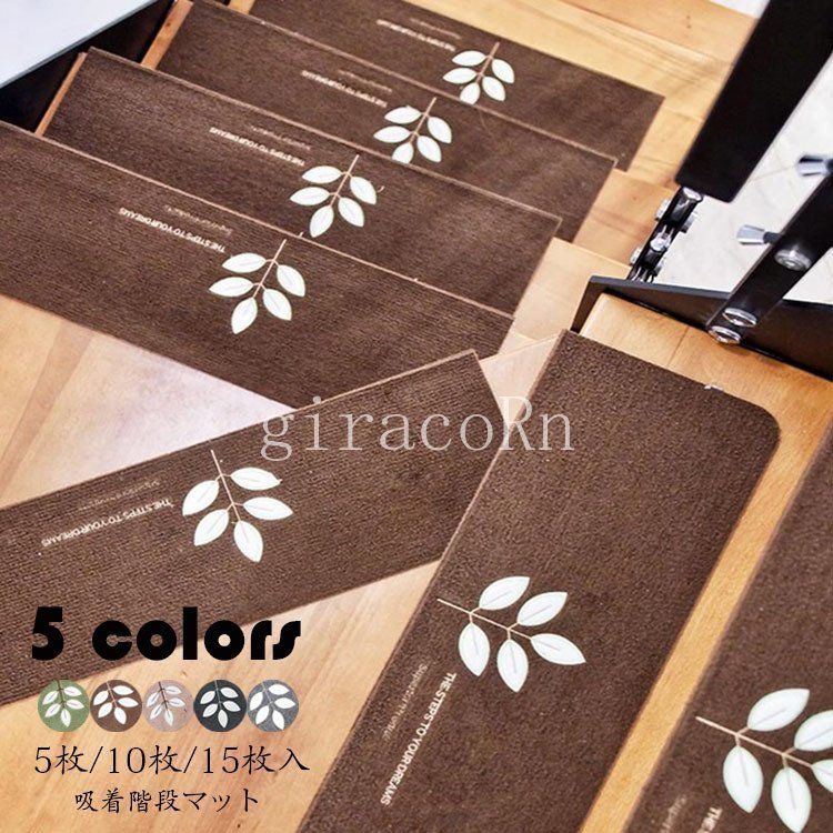 階段マット 吸着 蛍光 滑り止め 折り曲げ 防音 五つ葉柄 おしゃれ 蓄光式 足冷え 介護 高齢者
