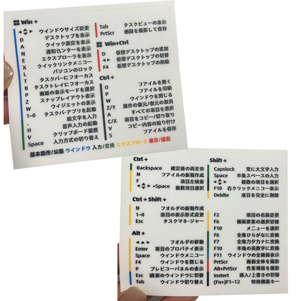 ショートカットキー シール 一覧表 早見表 ステッカー 2枚組 日本語版 Windows Mac Excel 透明 便利 簡単 初心者 学生