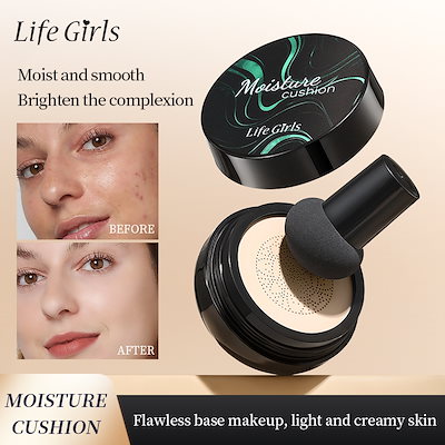 マッシュルーム パフ クッションファンデーション コスメ メイク 高カバー 自然 艶感 長時間 持続 崩れにくい 軽量 携帯 便利 人気 ベースメイク 透明感 保湿 ベースメイク 化粧下地