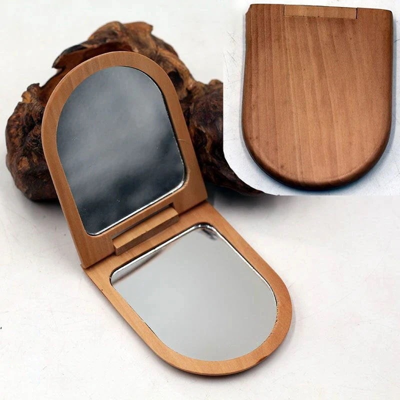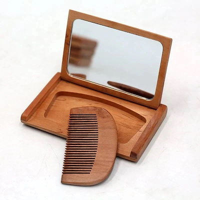 ミラー&コーム 手鏡 コンパクトミラー ハンドミラー コーム くし 櫛 ブラシ 木製 髪 ヘアアレンジ 身だしなみセット 持ち運び 便利グッ