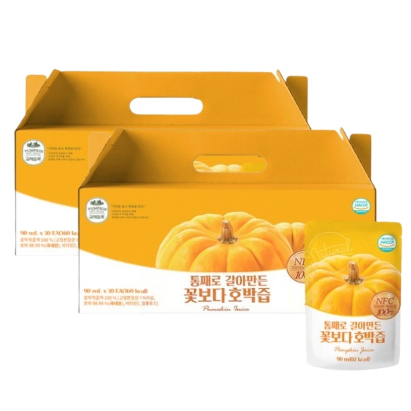 【無添加NFC】かぼちゃジュース 90ml×30包 2箱 スティック 果汁100% 韓国産 かぼちゃ飲料 濃厚 パウチ / パンプキンジュース フルーツジュース 健康ドリンク 個包装