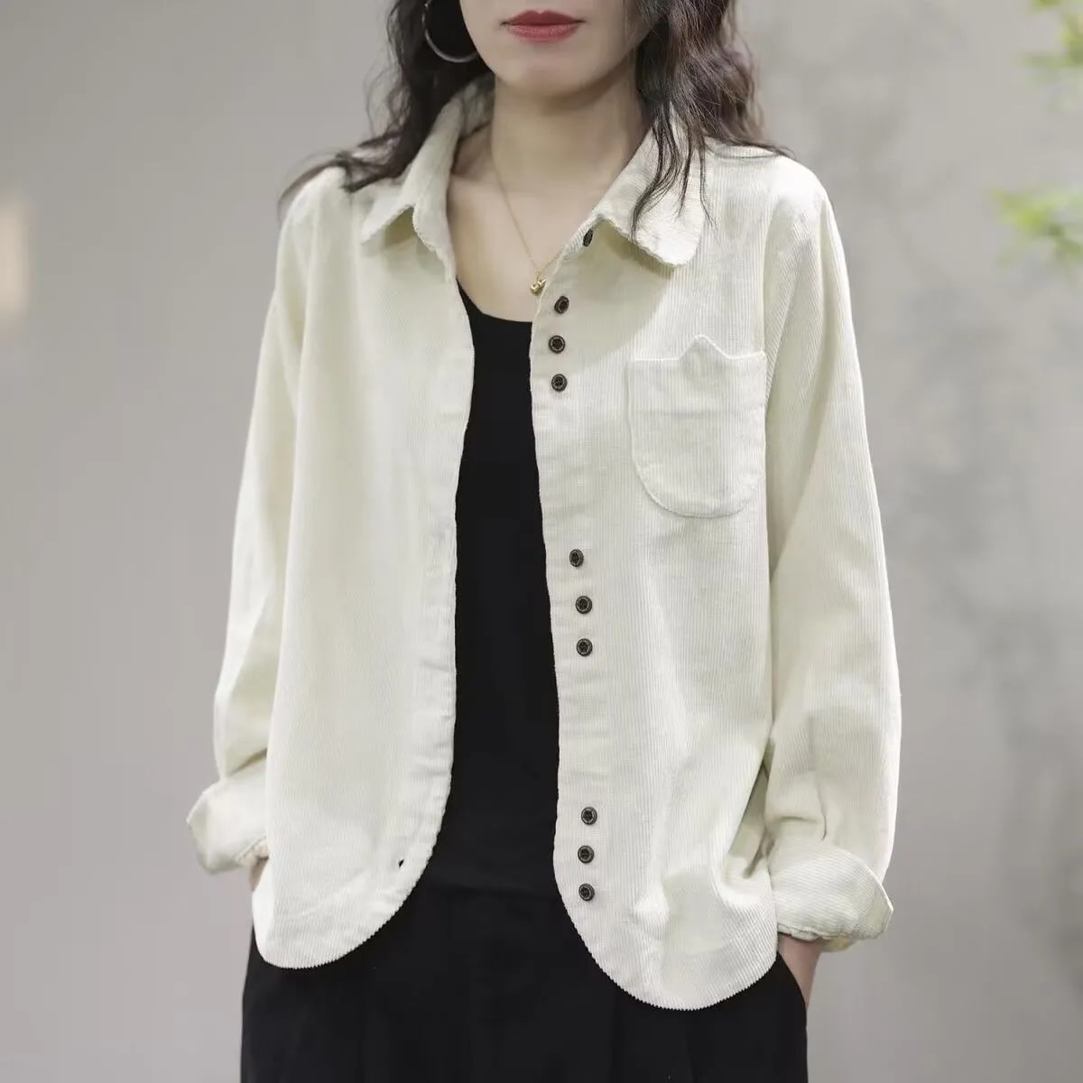 コーデュロイシャツ レディース春服 長袖 アウター 柔らか肌触り 無地 ブラウス 体型カバー 韓国ファッションカーディガン 百掛け 着痩せ シャツ カジュアル トップス