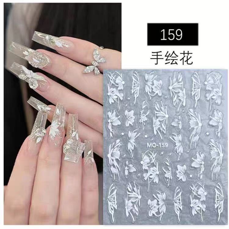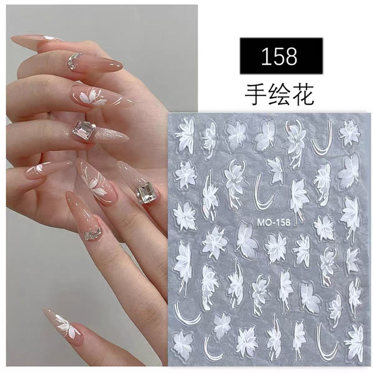 雪割草 ネイルシール レリーフ 立体 ホワイト 手描き 小花 爪 アクセサリー33