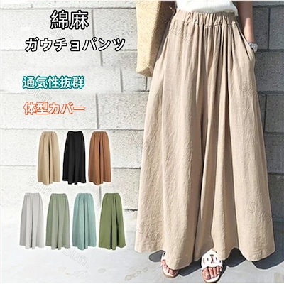 【本日限定】ワイドパンツ 綿麻 春 夏 ガウチョパンツ 無地 柔か軽か手触り良くゆったりら楽ちん 四季麻混 リネン風 韓国ファッション レディース 綿麻パンツ 美脚