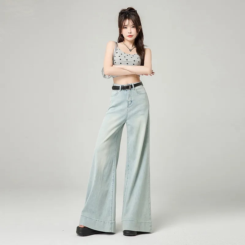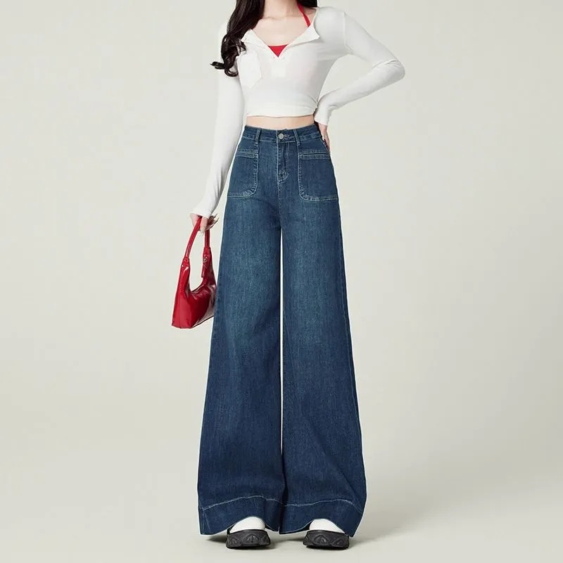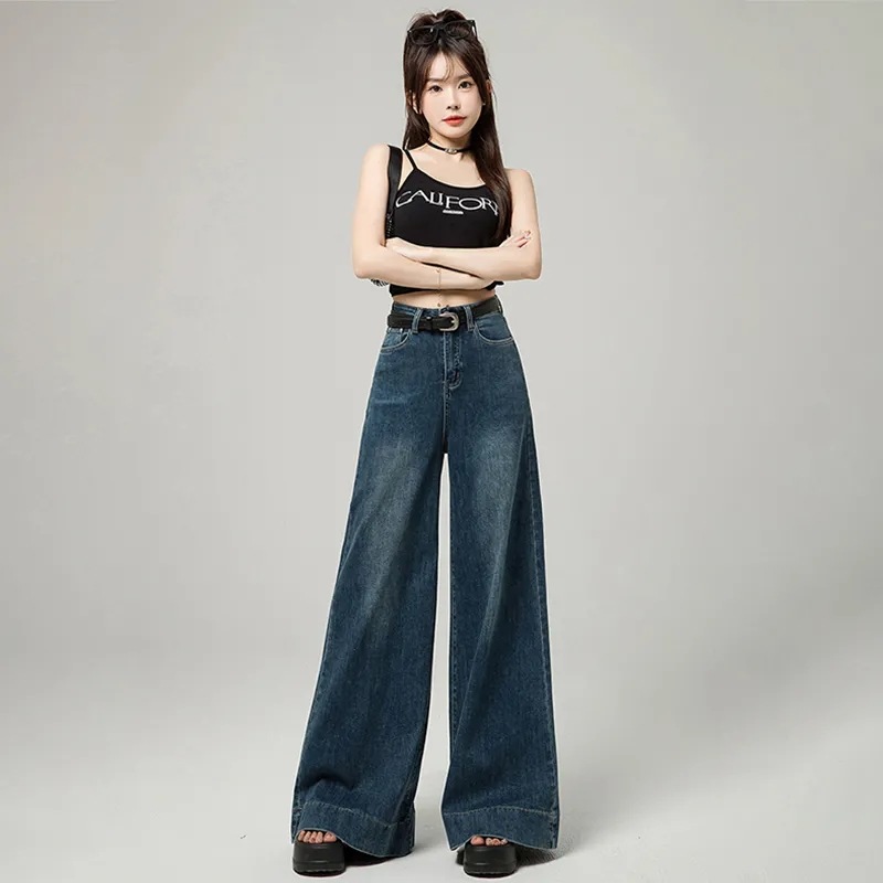レディース ハイウエスト ワイドデニムパンツ 新作 デザイン性 ゆったり デニムパンツ レディース スタイルアップ フレア ロングパンツ スカンツ