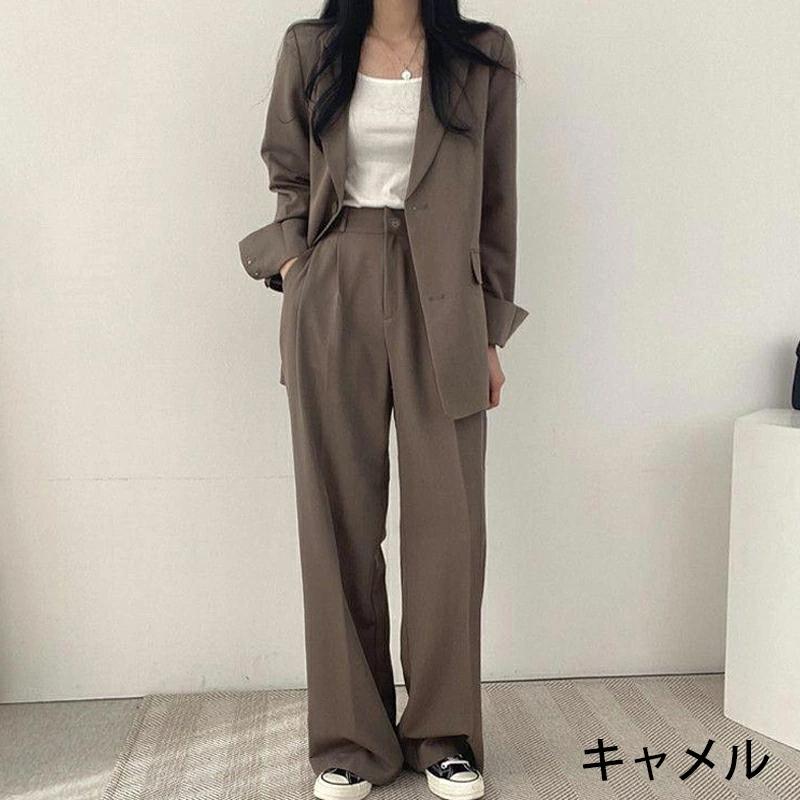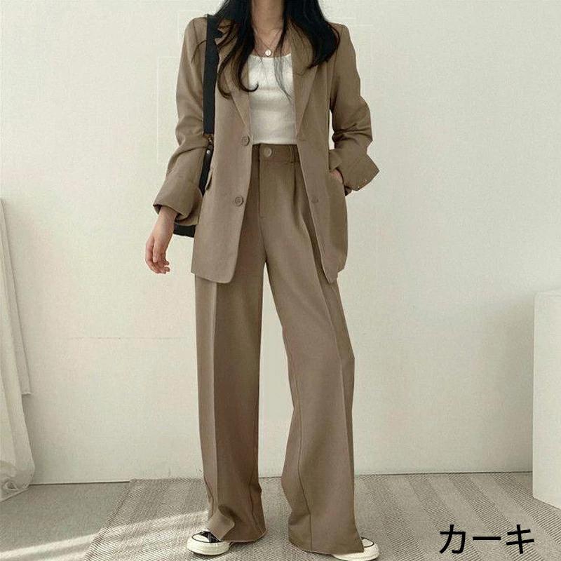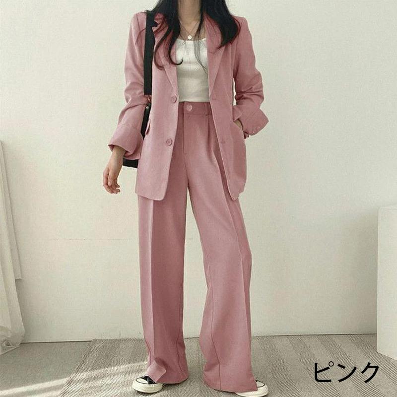 【季節替わり新作】フォーマル セットアップ 2点セット パンツ ジャケット レディース 上下セット 体型カバー パンツスーツ スーツ セットアップ カジュアル ノーカラー 入学式