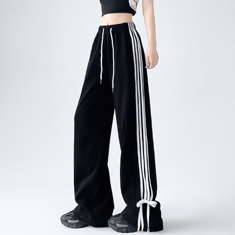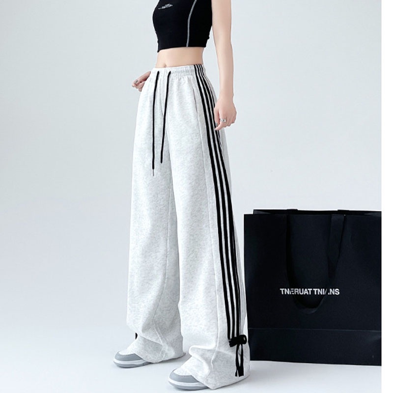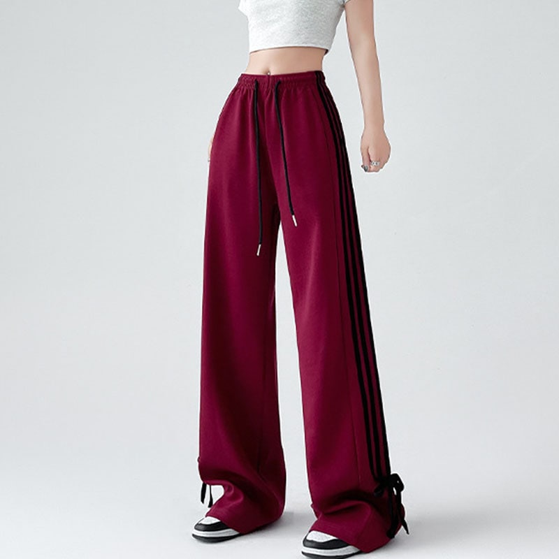 春夏新作 レディース ハイウエスト デザインワイドパンツ ゆったりシルエット ドレープ感 リボン付き スウェットパンツ レイドバック カジュアル お出かけ 通勤 着痩せ