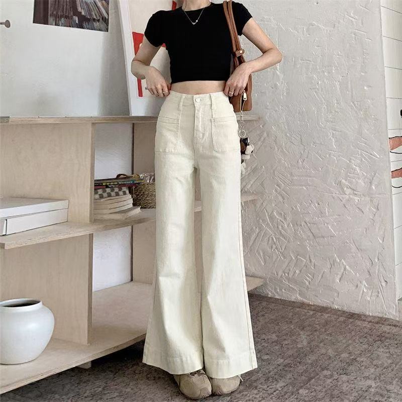 デニムパンツ ワイドパンツ レディース 春 夏 秋ハイウエストゆったり 脚長パンツ 微弾 痩せ見えワイドジーンズ 体型カバー 韓国ファッション