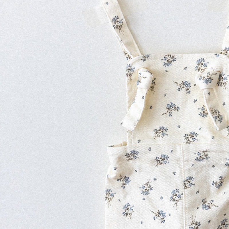 春秋 女児 デニムサロペット 無地 ツイル 小花柄 微フレア おしゃれ ベビー キッズ 姉妹 お揃い オーバーオール 子供服
