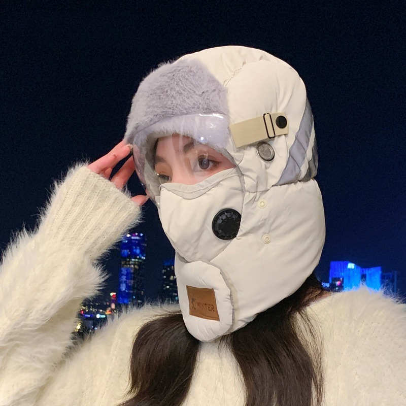 雷鋒帽女冬の防風保温綿帽自転車防寒マスク防雨雪スキー帽子男とベルベットが厚くなった
