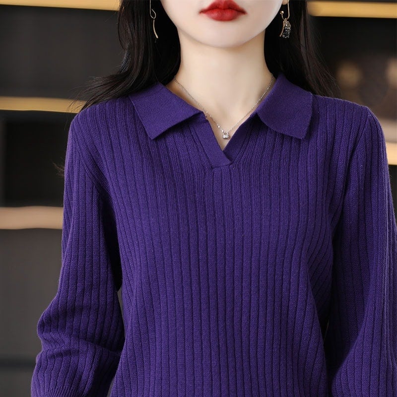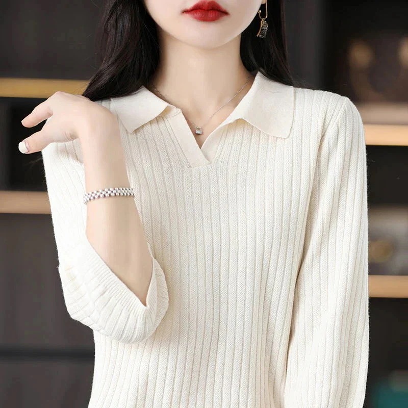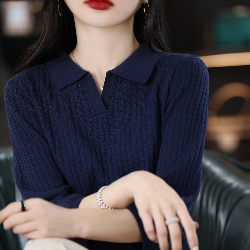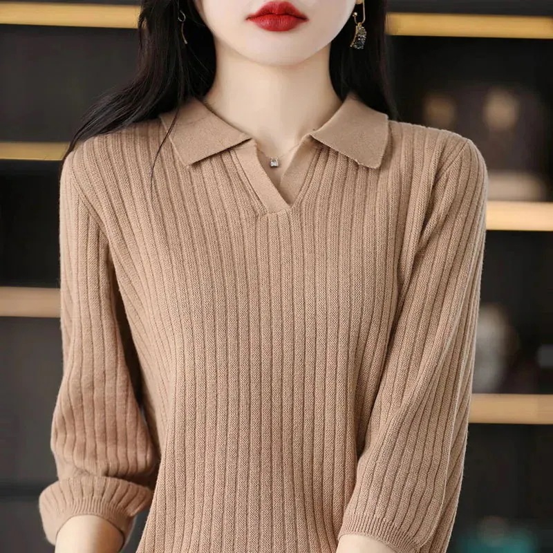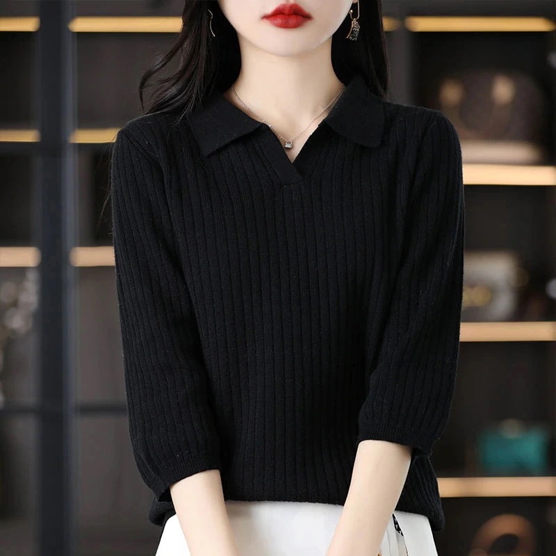 新作 100% コットン七分袖 POLO カラーニット レディースエレガントリラックスド半袖 通勤用ニットアウタートップス ニット