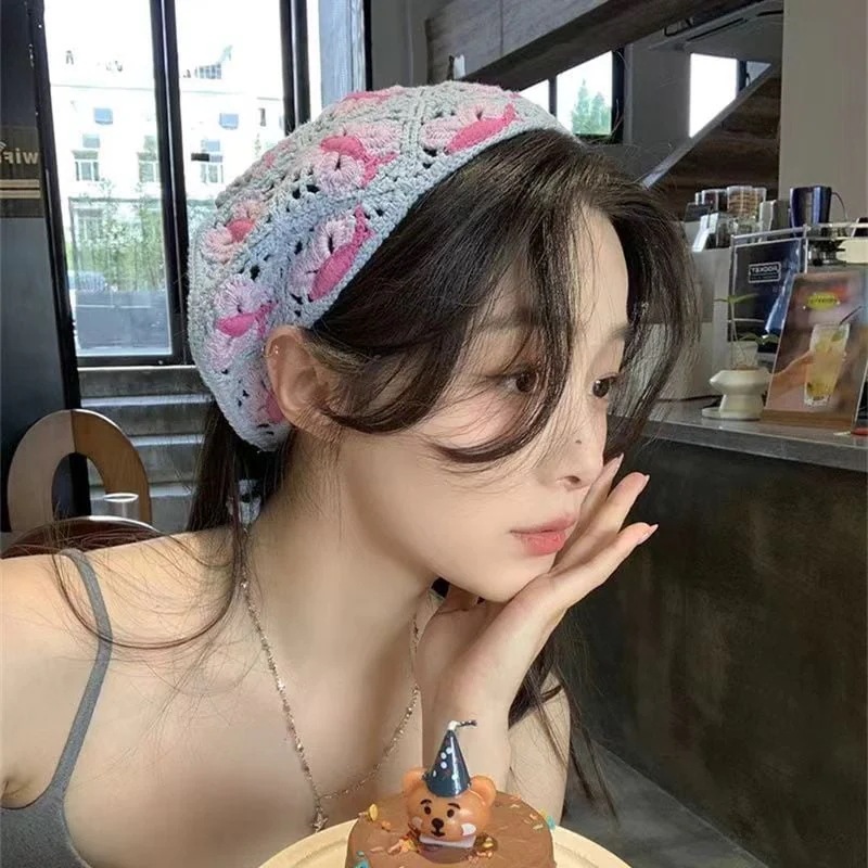 フレンチヴィンテージ風 透かし編み クロシェ 三角スカーフ レディース 新作 夏用 カントリー風 ヘアバンド アートで爽やかな フォト用ヘアアクセサリー