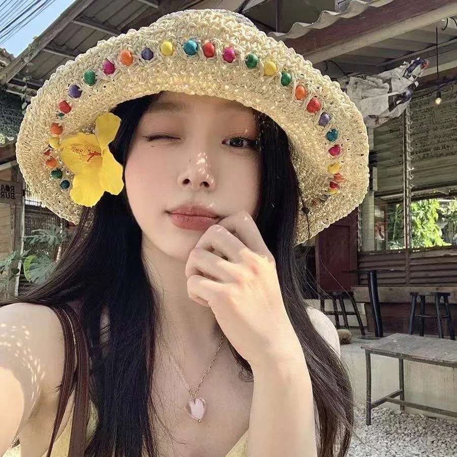 サンシェード 大きなつば キャップ 女性 空洞 カラフル 帽子 夏 韓国ファッション 日焼け止め帽子