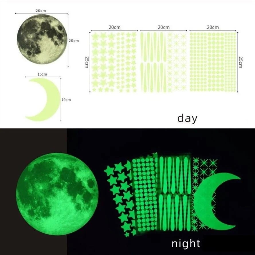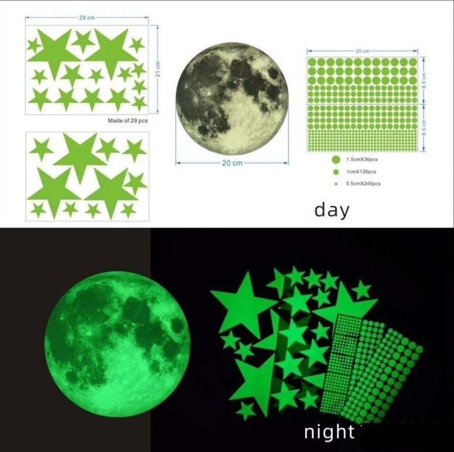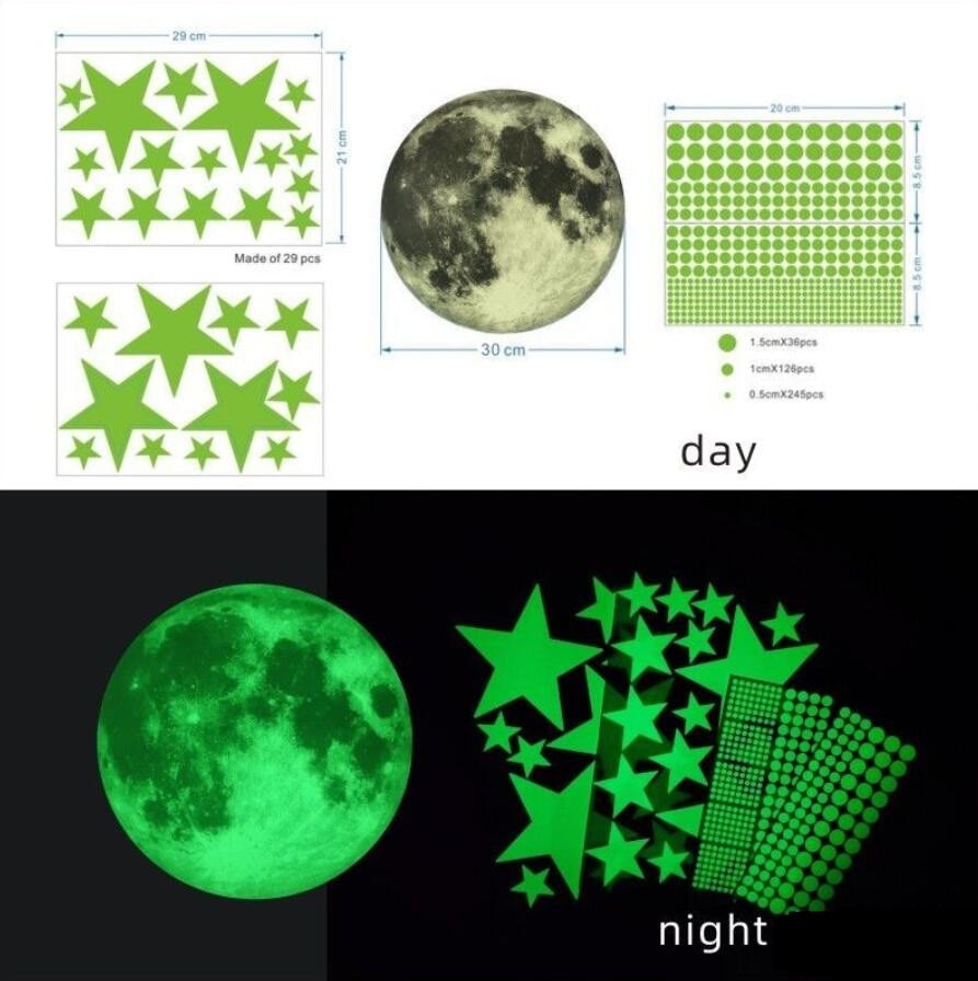 夜光ステッカー 蓄光 シール 夜光シール 月 ウォールステッカー 壁のステッカー 光るシール 蛍光ステッカー 窓ステッカー 星空 きらきら クリスマス 小物 部屋 天井 子供 プレゼント