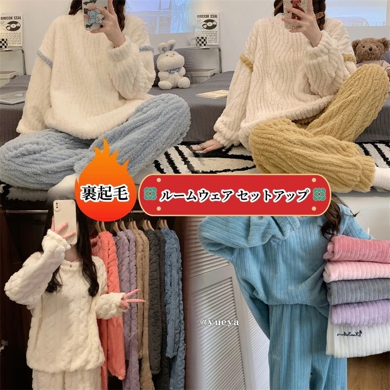 限定特/価パジャマ韓国ファッション裹起毛セットアップ 2点セット ルームウェア パジャマ レディース ルームウェア セットアップあったかルームウェアもこもこパジャマ ゆったりスウェット