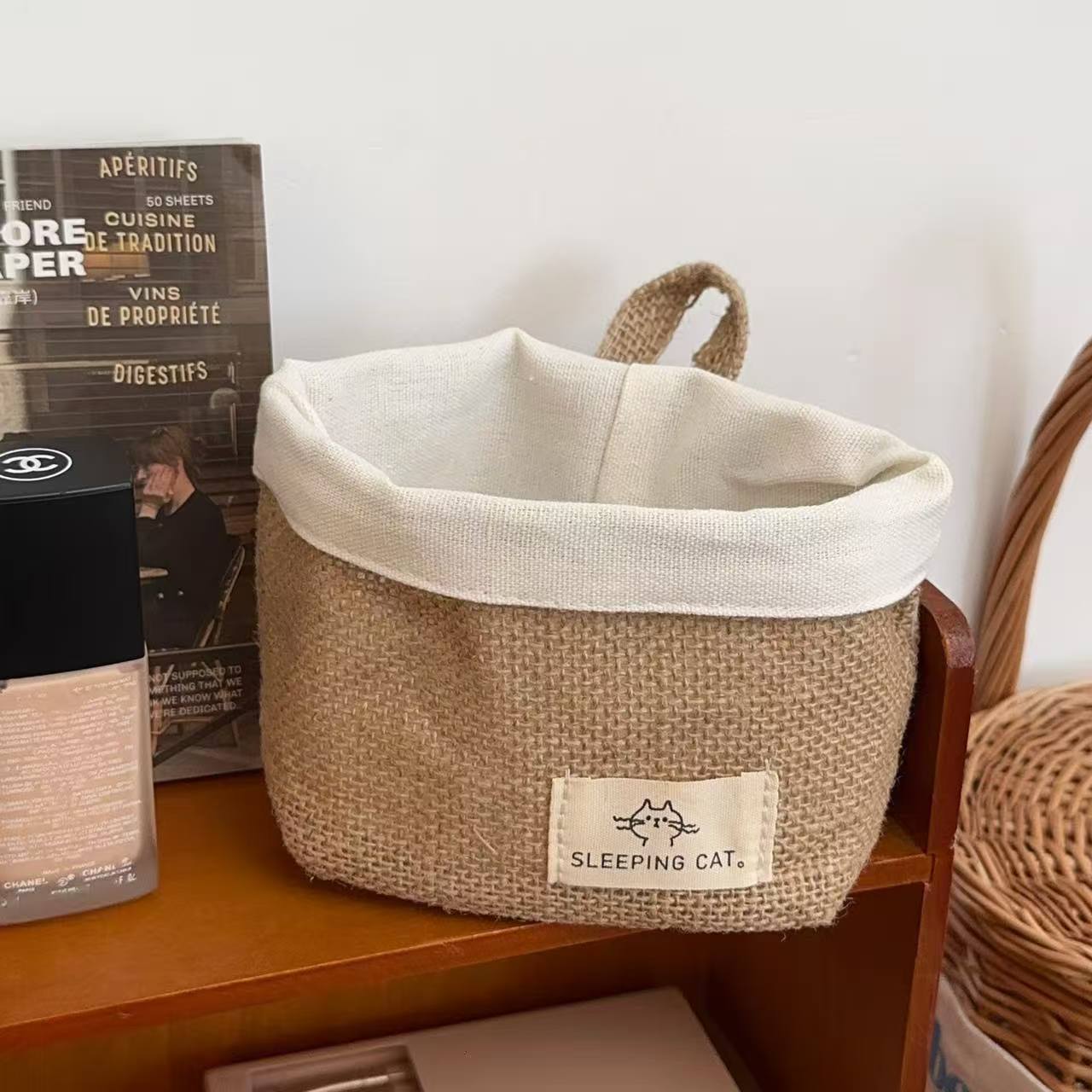 台所のショウガのニンニクの収納かごの壁はかごのデスクトップの両用の綿麻の収納袋の寮の化粧品の収納かごを掛けます