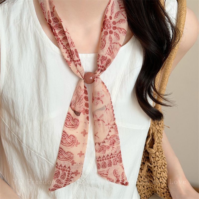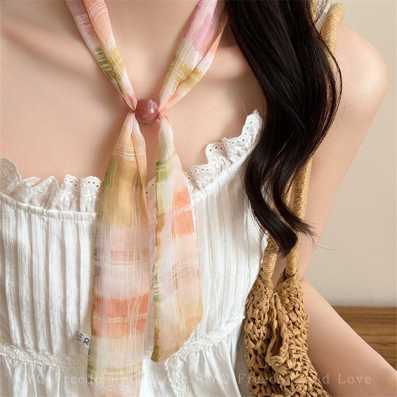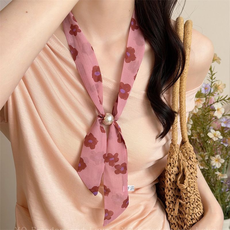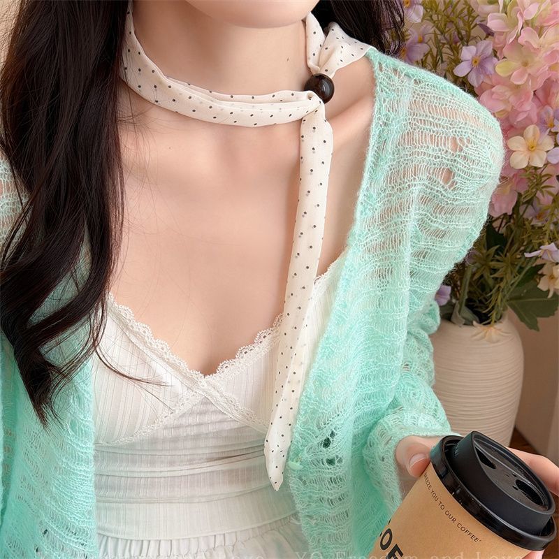 2026新型の韓国系の波点の数珠はシルクのタオルの女性の春のドーパミンの花系の首のスカーフを引っ張ります