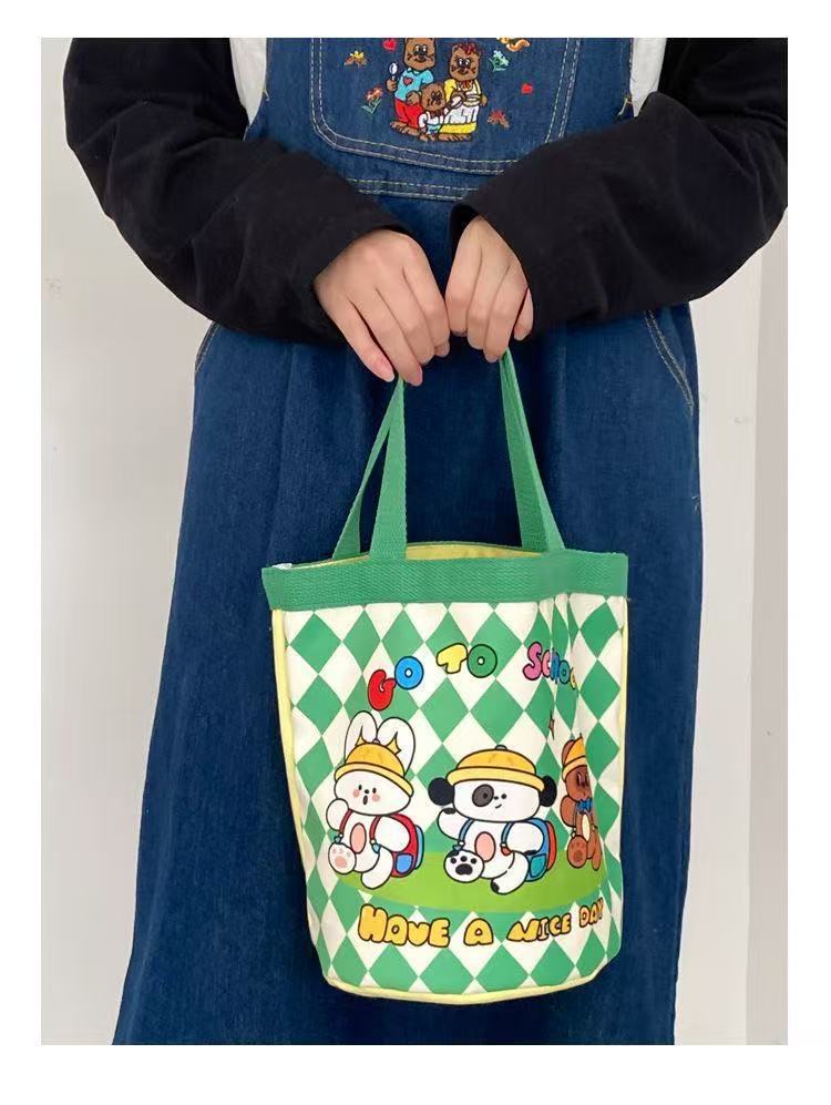 かわいい子犬の円筒バッグの手提げキャンバスバッグの新型韓風少女心弁当袋の大容量アニメのバケツバッグ