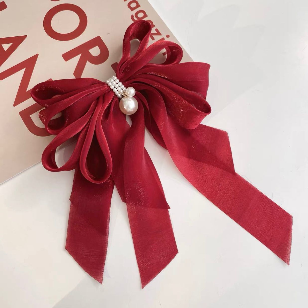 ヘアクリップ ヘアクリップ 韓国 新気品 百掛け パールリボンヘアピンヘアアクセ