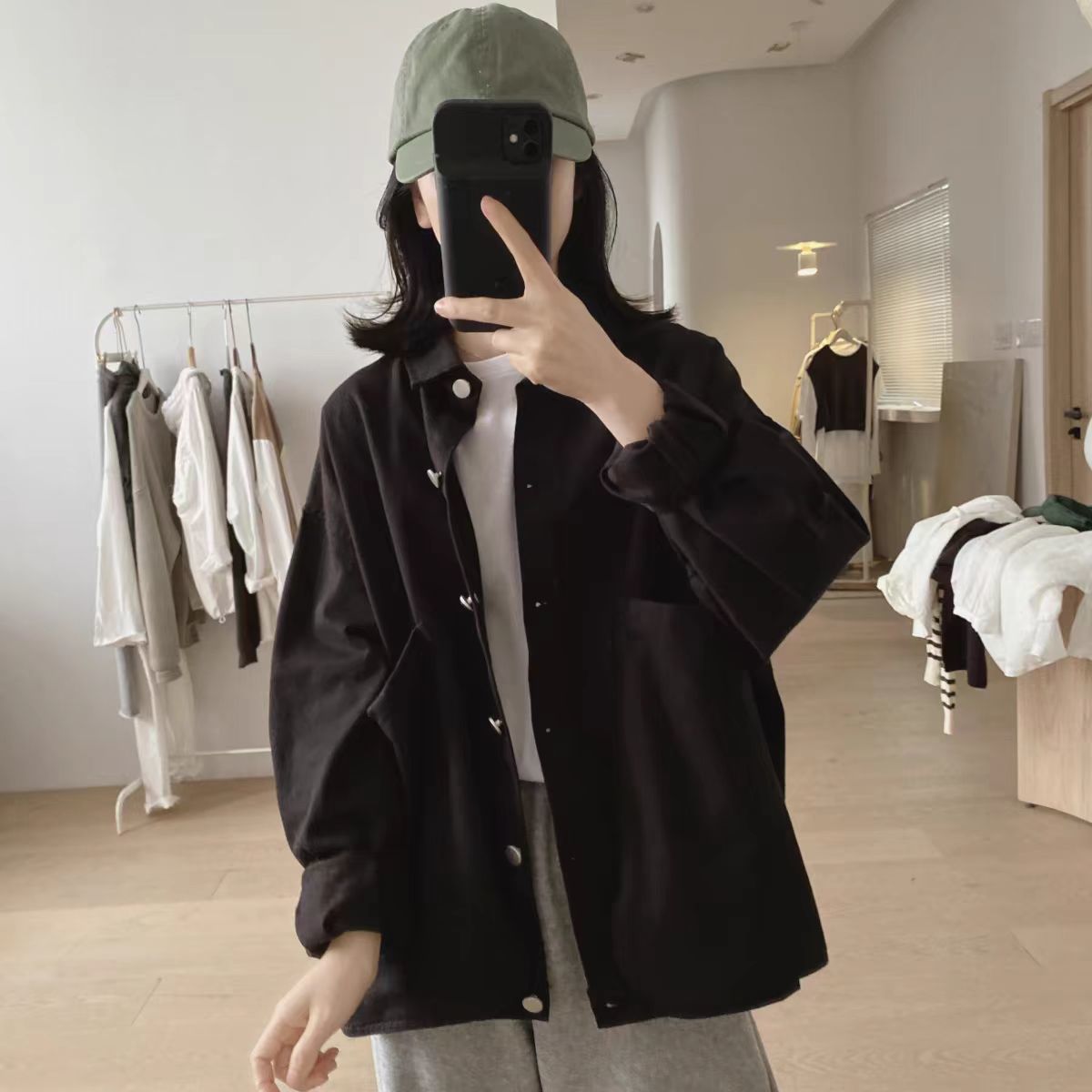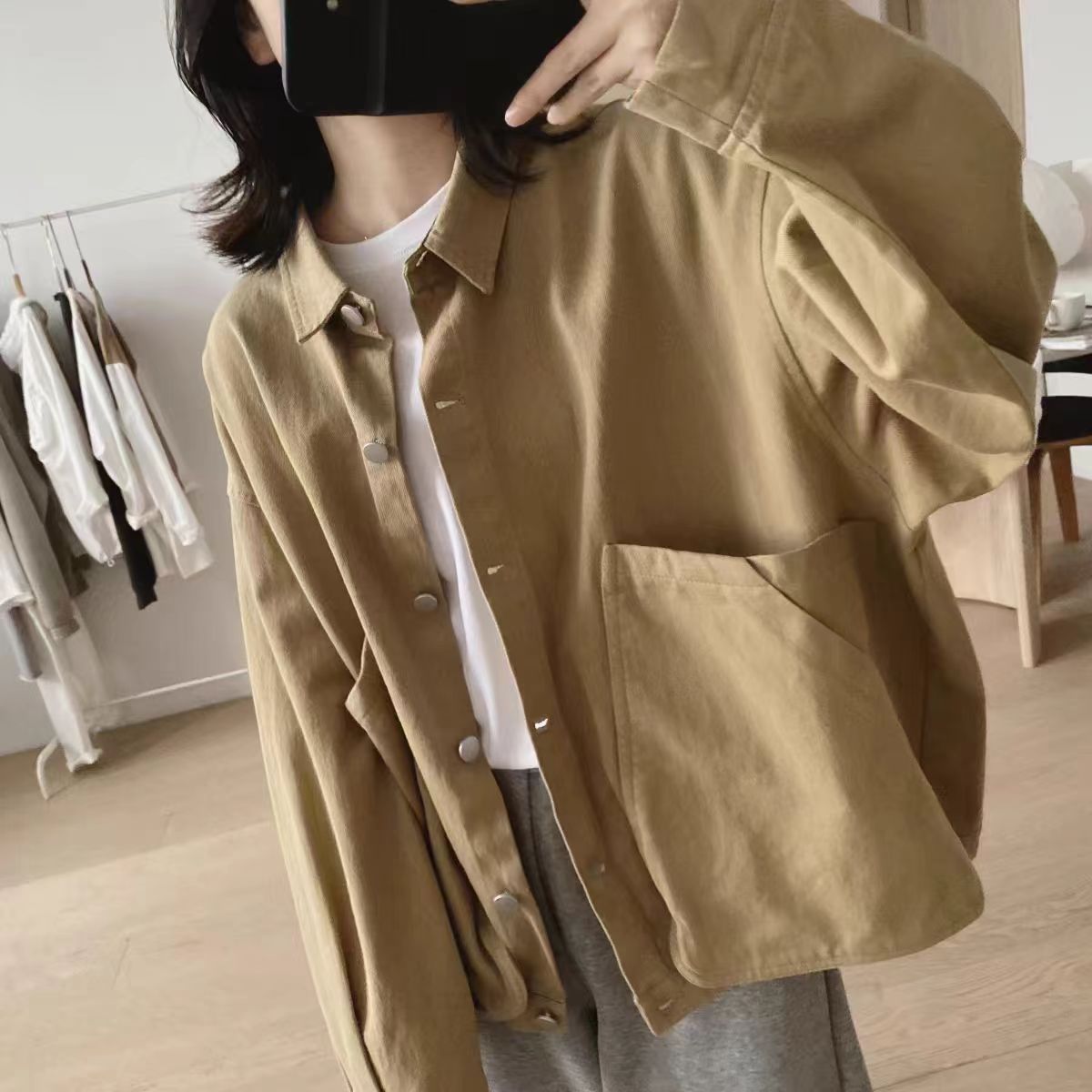 高品 質 春服 長袖ブルゾン 大きなポケット付き アウター レディース ジャケット 無地 スウェット カーディガン ショート丈 ブラウス 長袖 春 秋 大きいサイズ 20代 30代 40代 50代