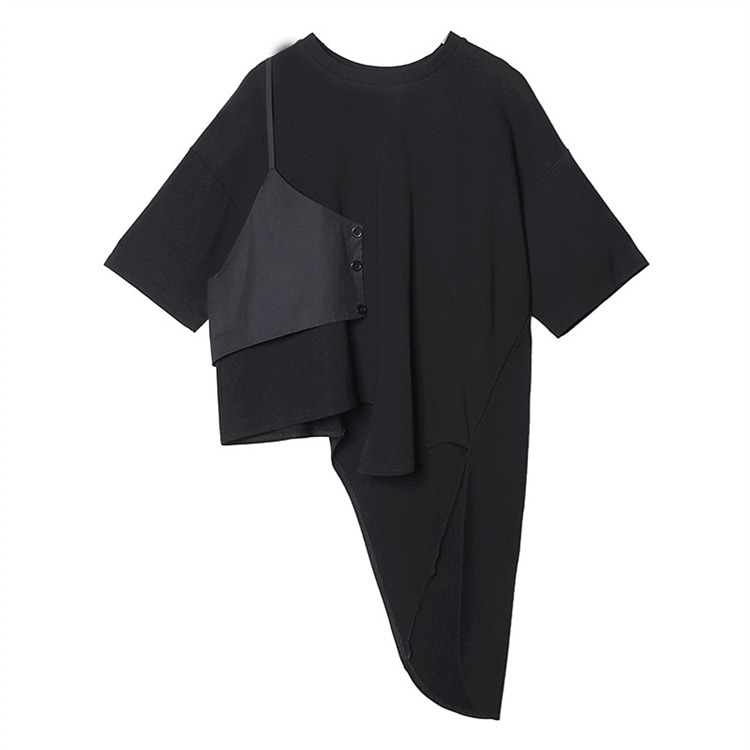 INSスタイル 夏レディースカジュアルセット アシンメトリー半袖Tシャツとプリーツロングスカート