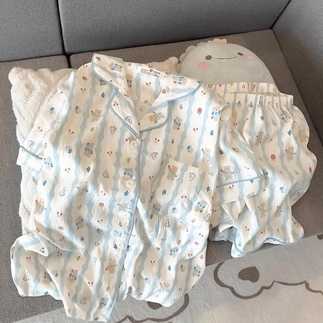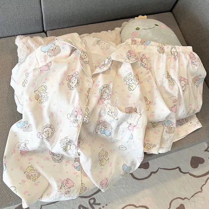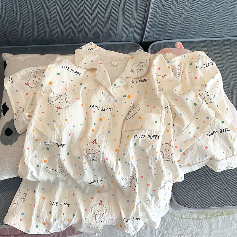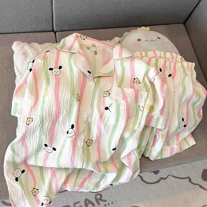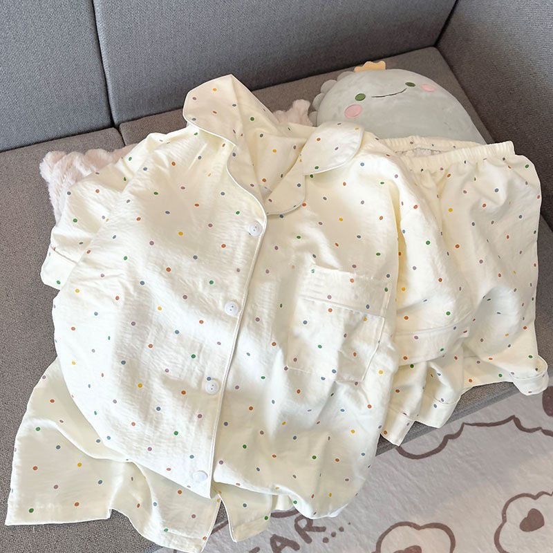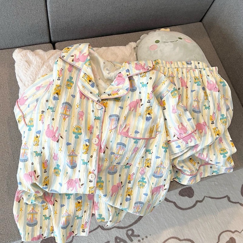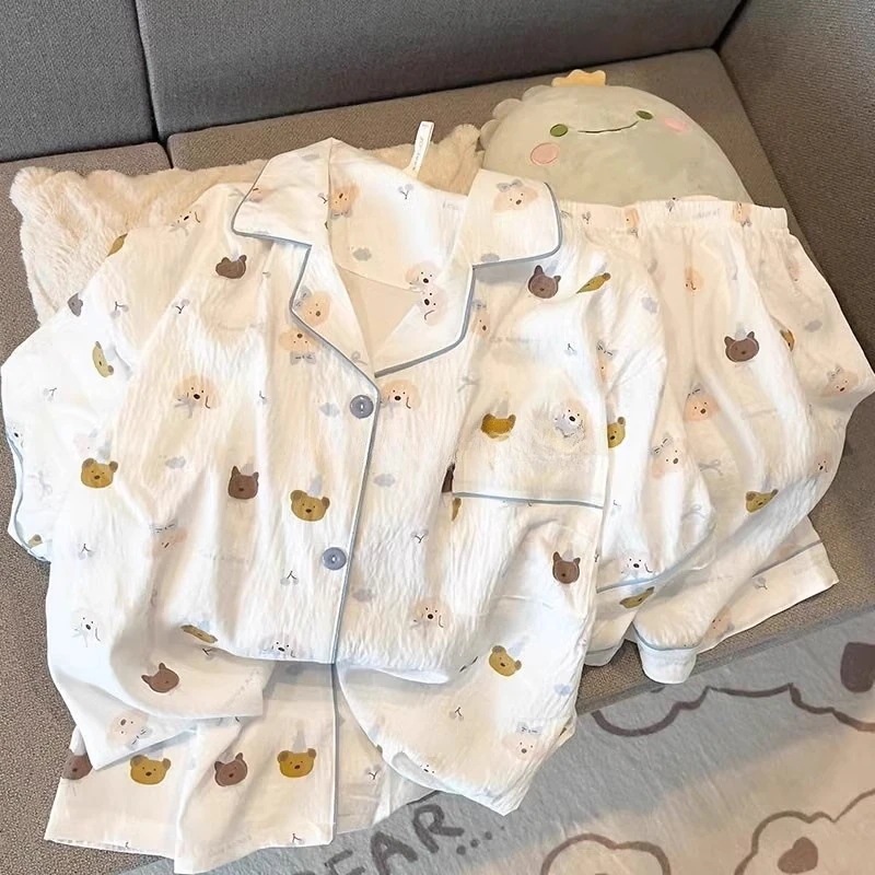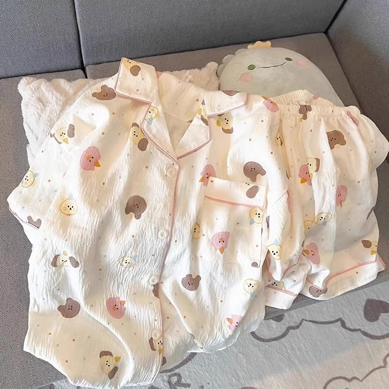 パジャマ女性用夏雲綿新型甘可愛いカーディガンカジュアル半袖半ズボン部屋着セット