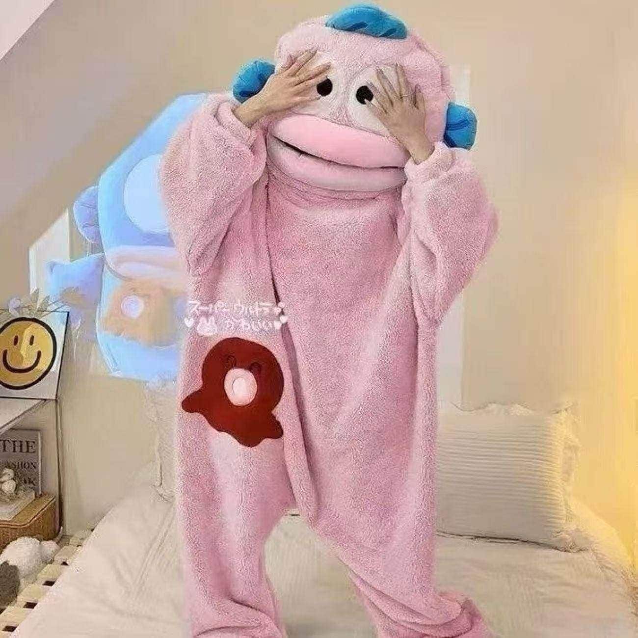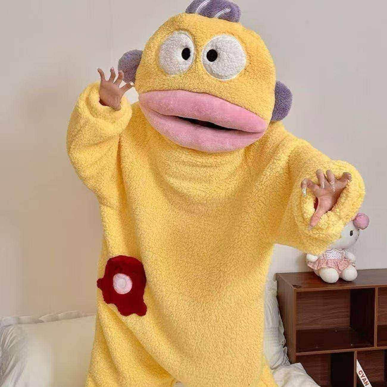 2026新入荷もこもこパジャマ 着ぐるみパジャマ 大口モンスター ワンピースパジャマ 冬季 裏起毛 厚手 保温性 抽象的 ダサキュート ロングヘア 普段着としても着用可 ホームウェアパジャマ