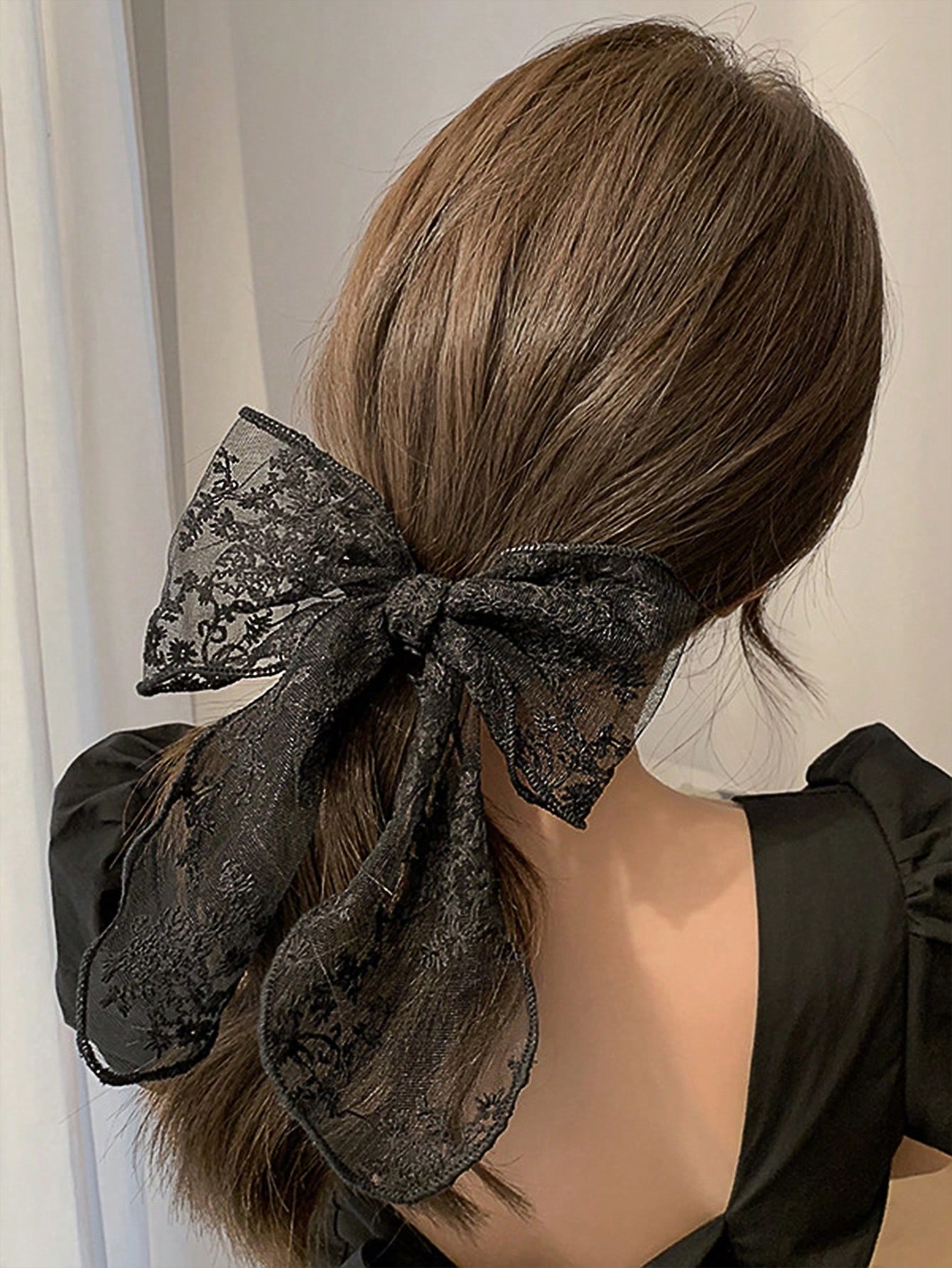 レース ホワイト リボン ポニーテール ヘアクリップシンプルで優雅な女の子のヘアアクセサリー学校大学リボンかわいいクラシック冬のレディースアウトフィットヘアアクセサリーヘッドアクセサ