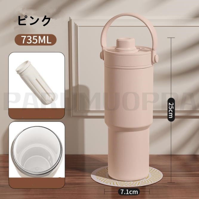 セラミック タンブラー 水筒 タンブラー ストロー付き 持ち運び おしゃれ 蓋付き こぼれない 735ml 大容量 保温保冷 真空断熱 おしゃれ マグボトル コーヒー