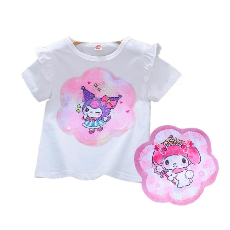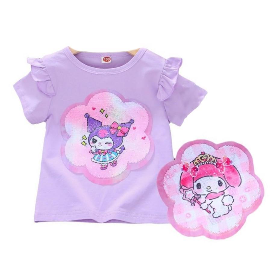 クロミ/マイメロ 半袖tシャツ キッズ 夏服 コットン 子供服 スパンコール 柄替え スウェットシャツ ガールズ トレーナー 女の子 ホワイト/ピンク/パープル