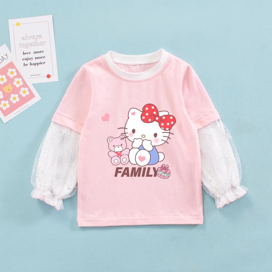 キティ 長袖 スパンコール tシャツ キッズ ふわふわ 綿 子供服 ガールズ スウェットシャツ インナーシャツ ピンク/ブルー/パープル