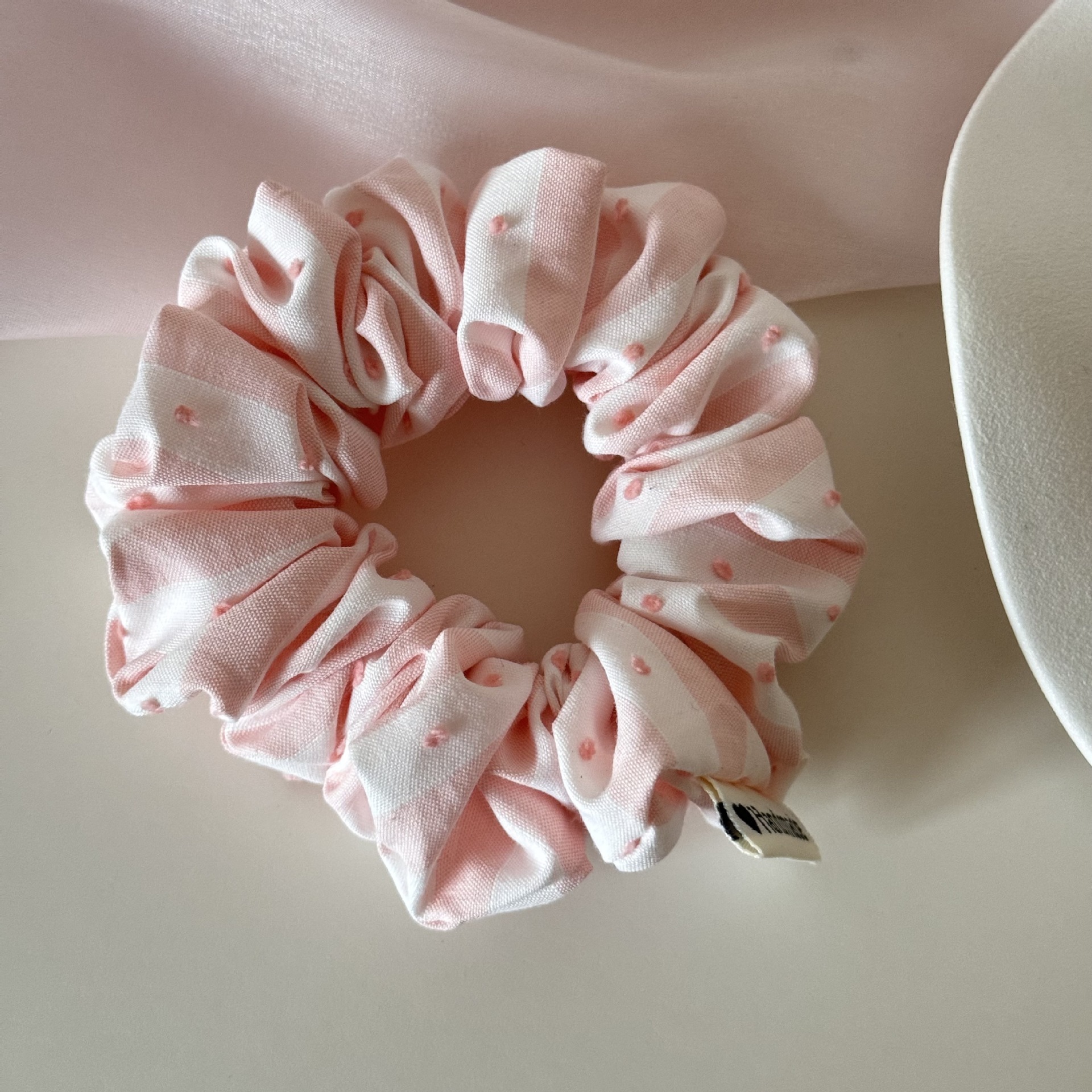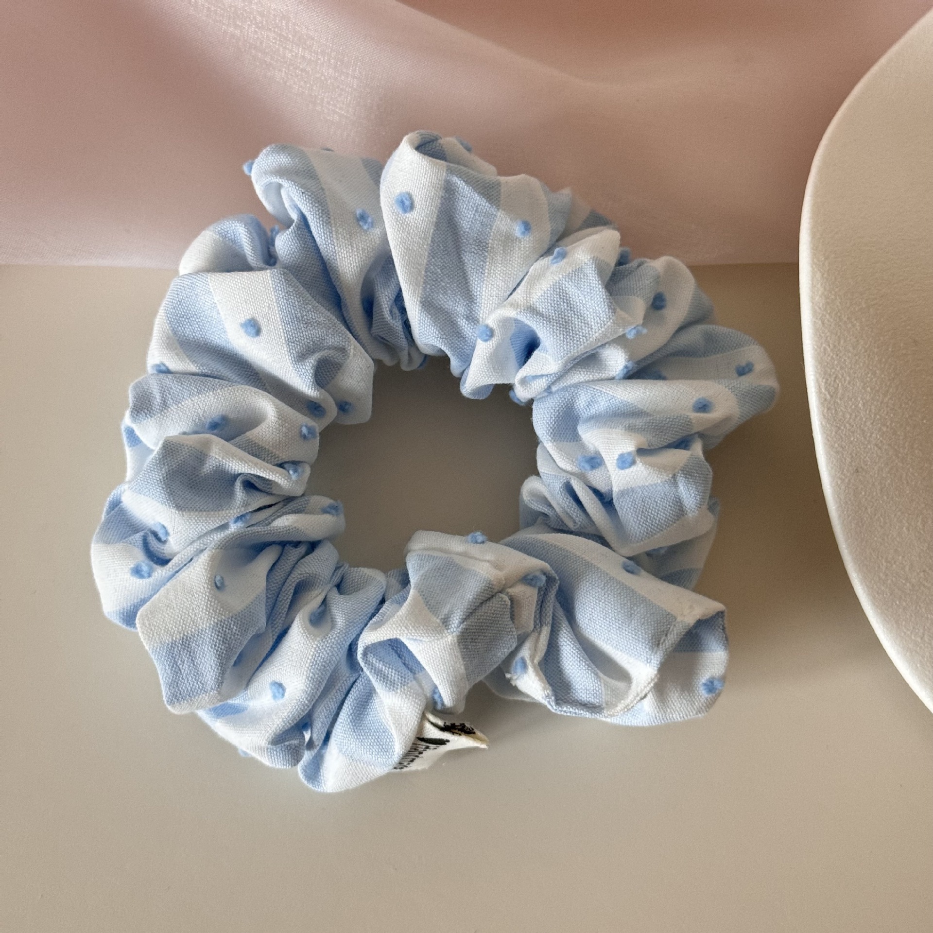 シュシュ 春 韓国 チェック柄 布製 ガーリー ヘアアクセサリー かわいい スカイブルー 淡いピンク ベージュ 髪留め