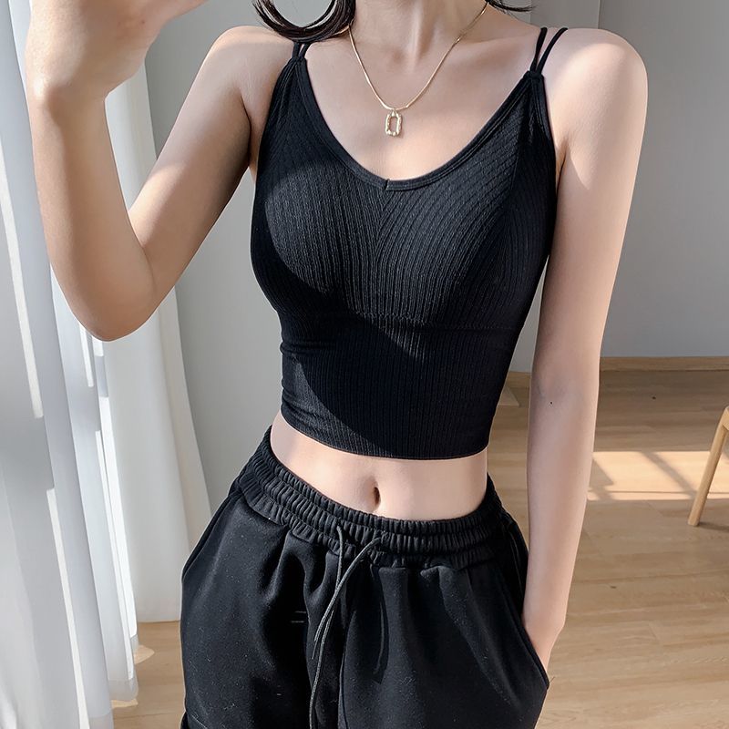 人気新作 4色 カップ付きキャミソール Vネック ショート丈ニットトップス タンクトップ 肌着 ブラ キャミ て取り外し可能08