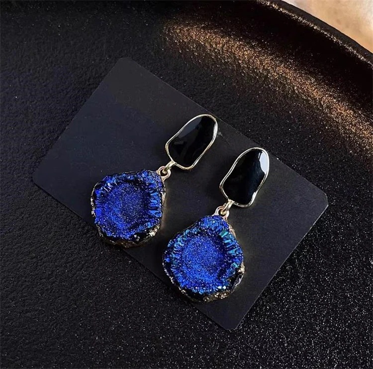 通勤するクラインブルーの不規則なドロップ模様が魅力の女性用イヤーピアス 大胆でスタイリッシュなデザインが あなたの個性を輝かせます シンプルな服装にも映える トレンド感あふれるアクセントアイテムです