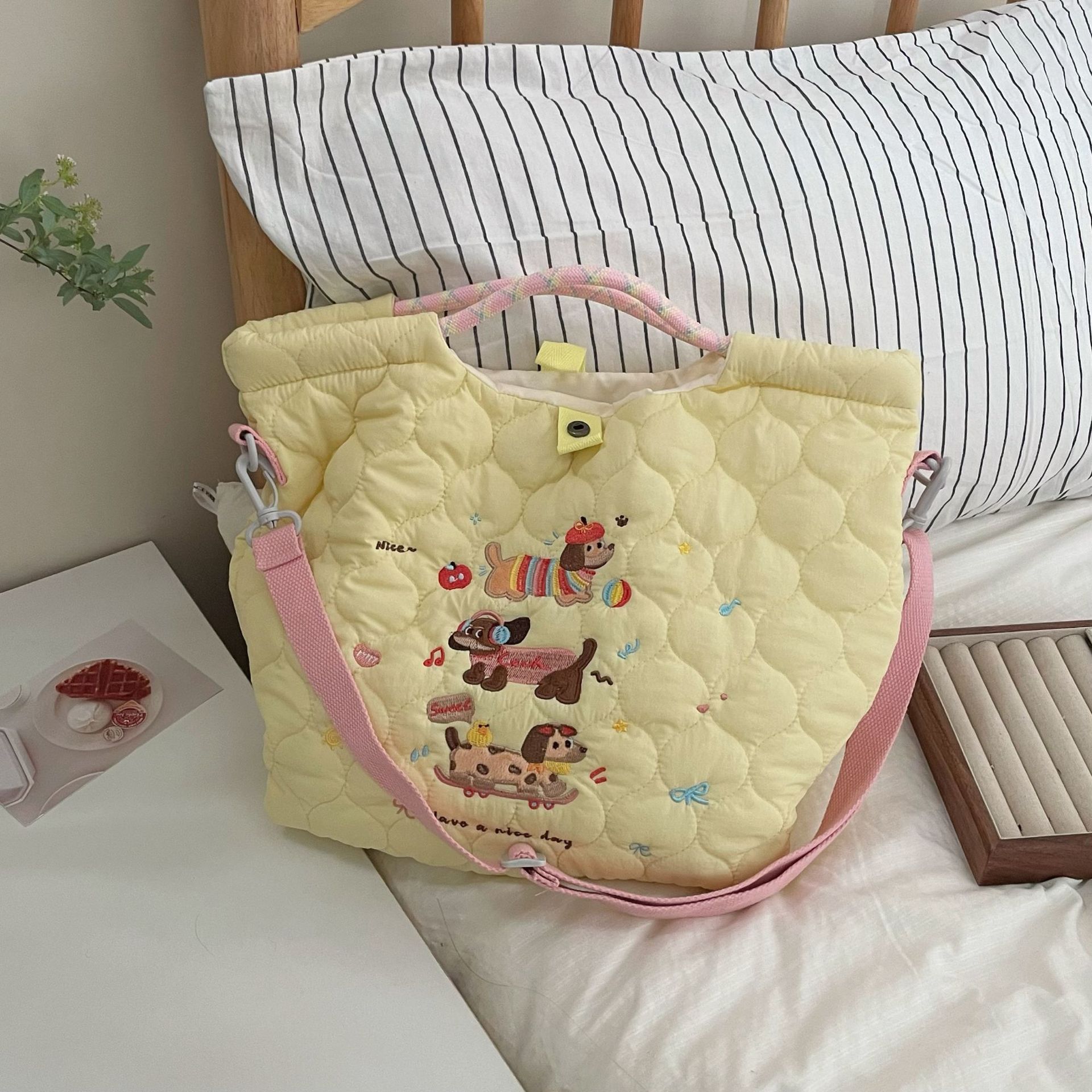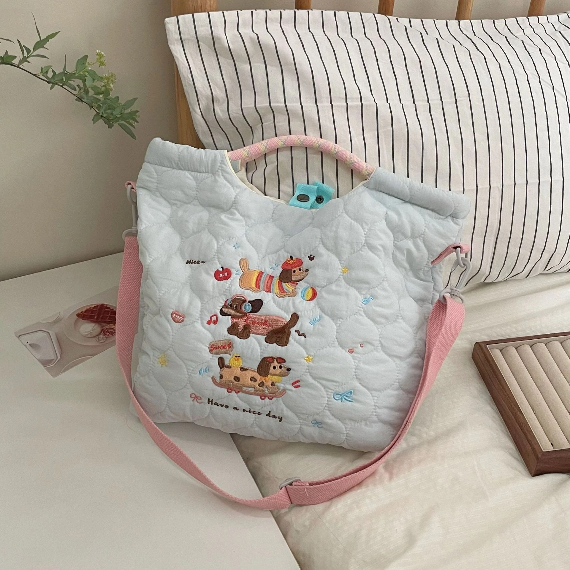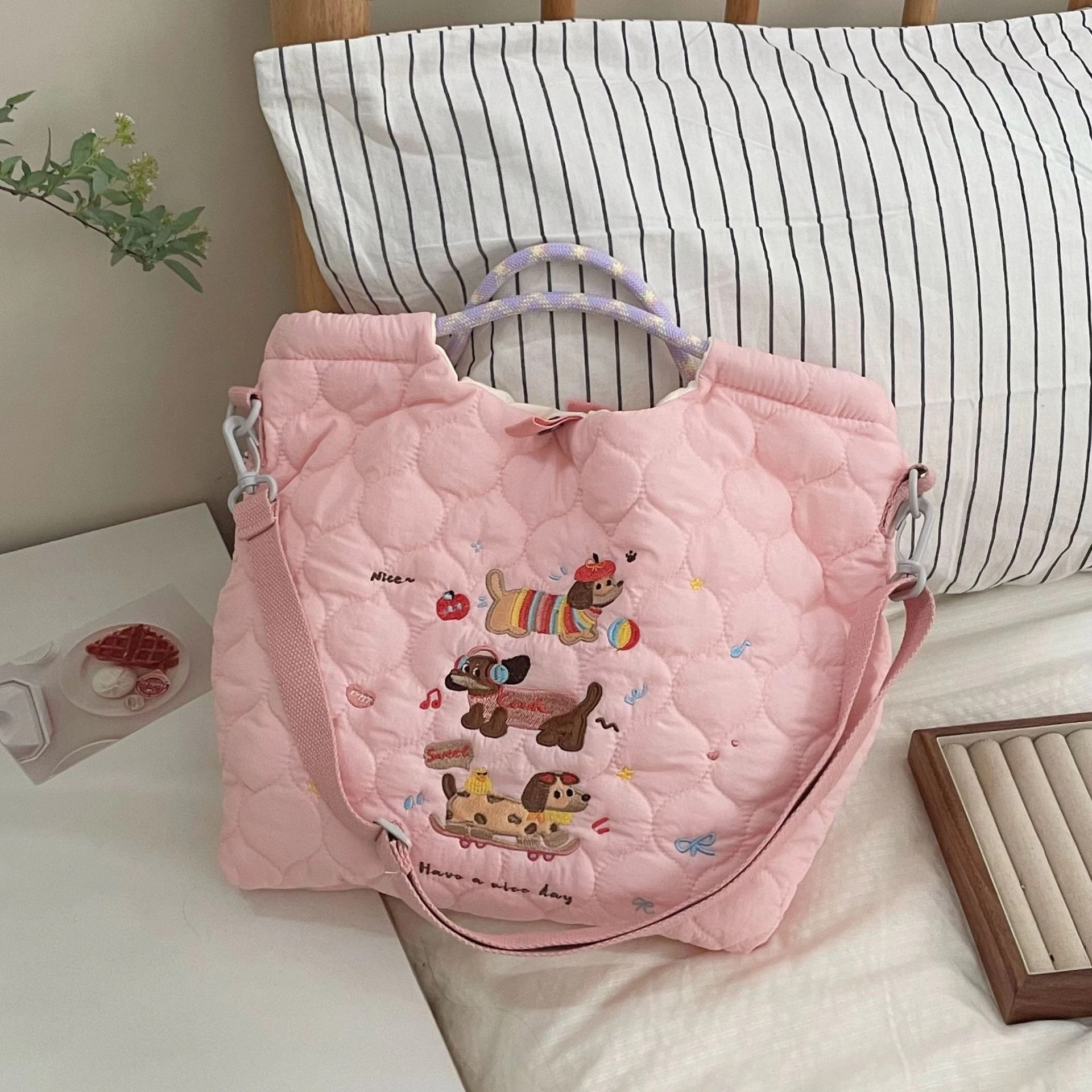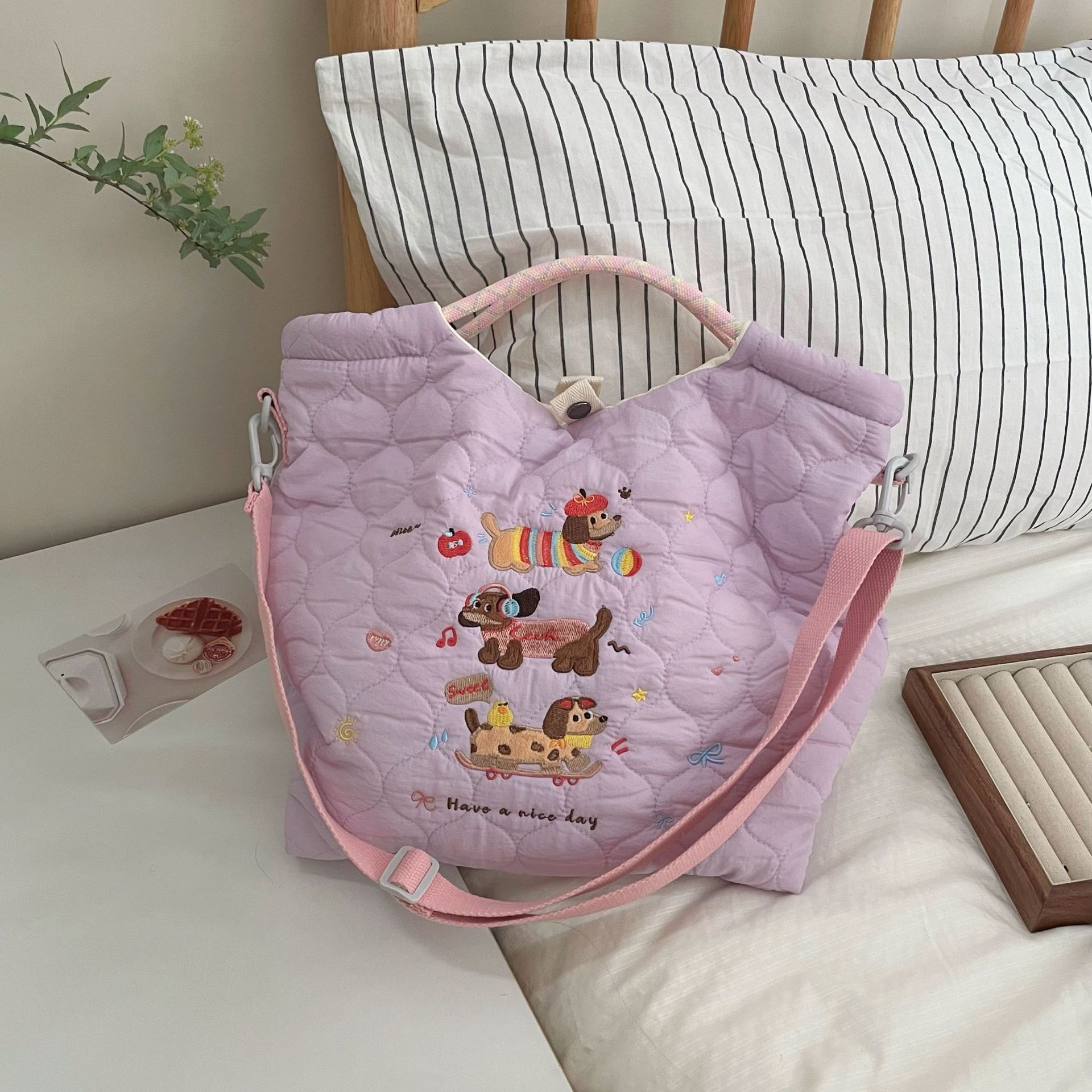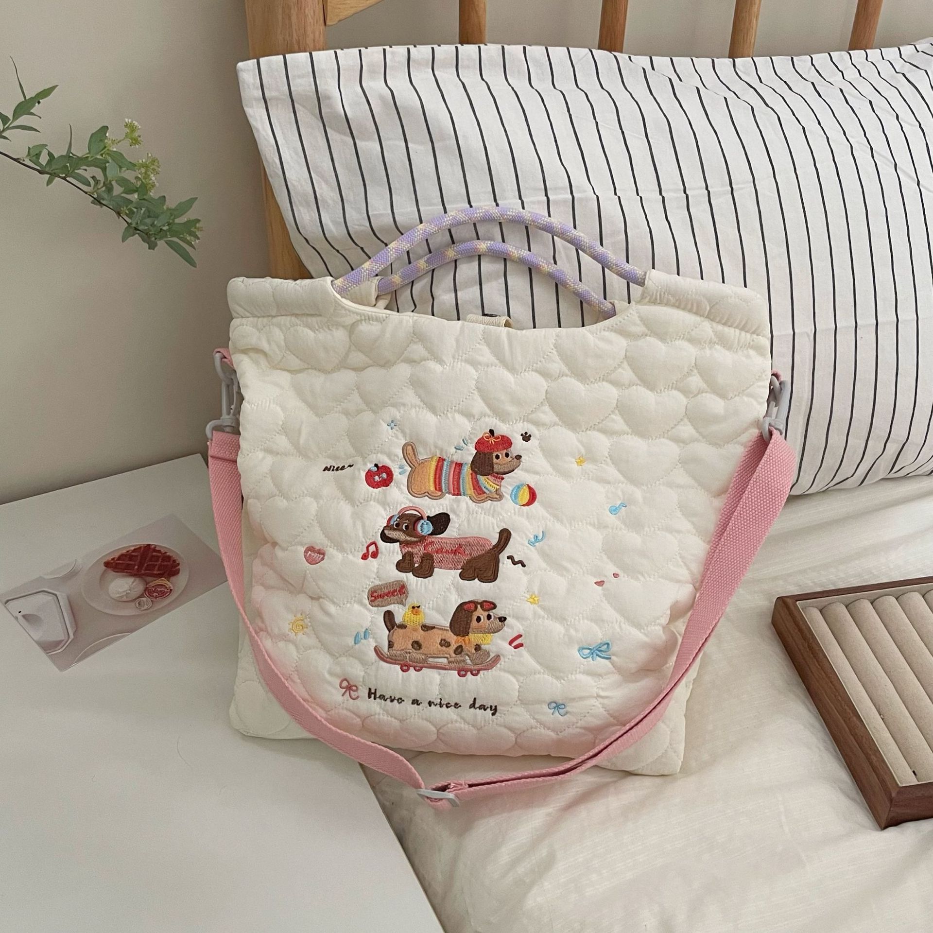 カートゥーン刺繍がふわふわかわいい犬の斜めショルダーバッグ大容量ショルダーバッグ通勤バッグ手提げバッグ