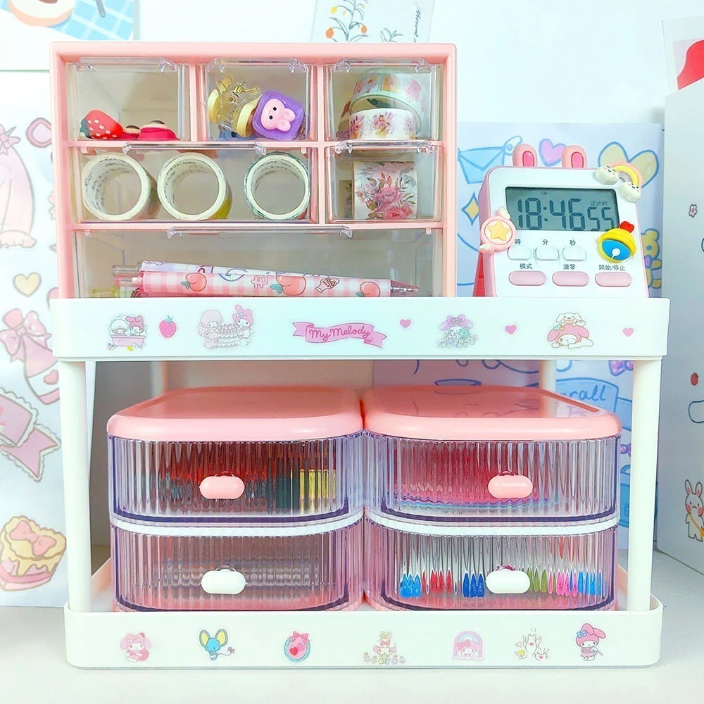 サンリオ収納ケースデスクトップ収納ケース美楽ティ引き出し式学生文房具化粧品収納整理神器